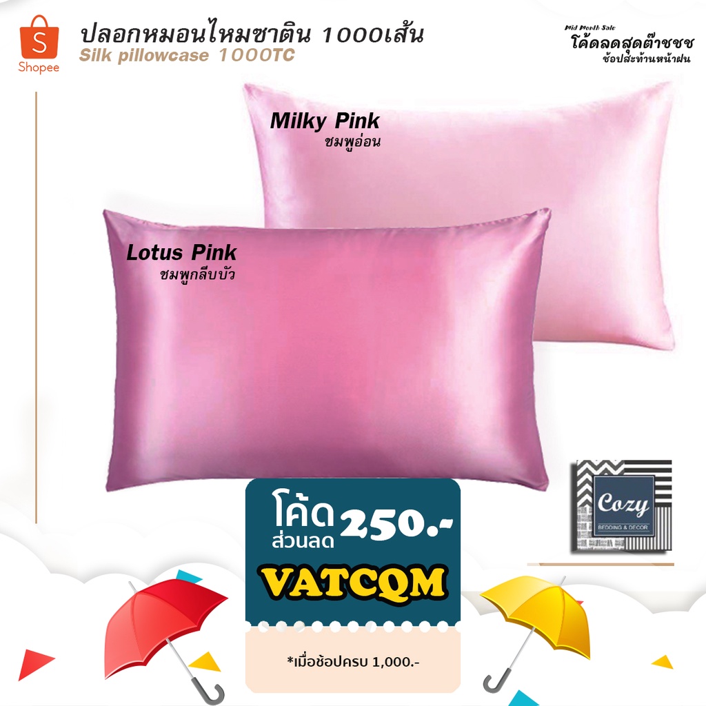 Cozy ปลอกหมอนไหมซาติน 1000เส้นด้าย. แท้100% #ลดรอยเหี่ยวย่น #ปลอกหมอนบอดี้ Slip silk