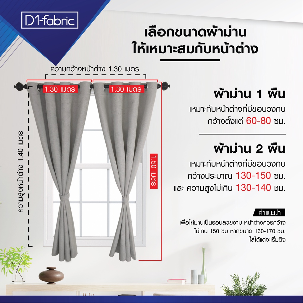 ผ้าม่านราคาถูก ผ้าม่านหน้าต่าง/ประตู กันแสงกันยูวี เนื้อสีเรียบ มีให้เลือกหลายสี รหัส AUS55(1 ผืน)