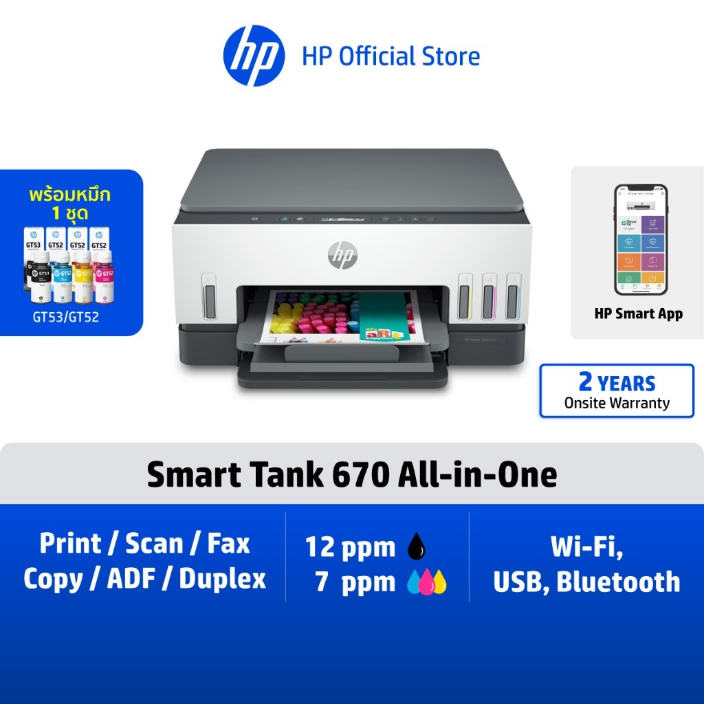 HP Smart Tank AIO 750/720/670/615 | Print Copy Scan |Auto Duplex| ใช้หมึก GT53 / GT52 | Wi-Fi USB