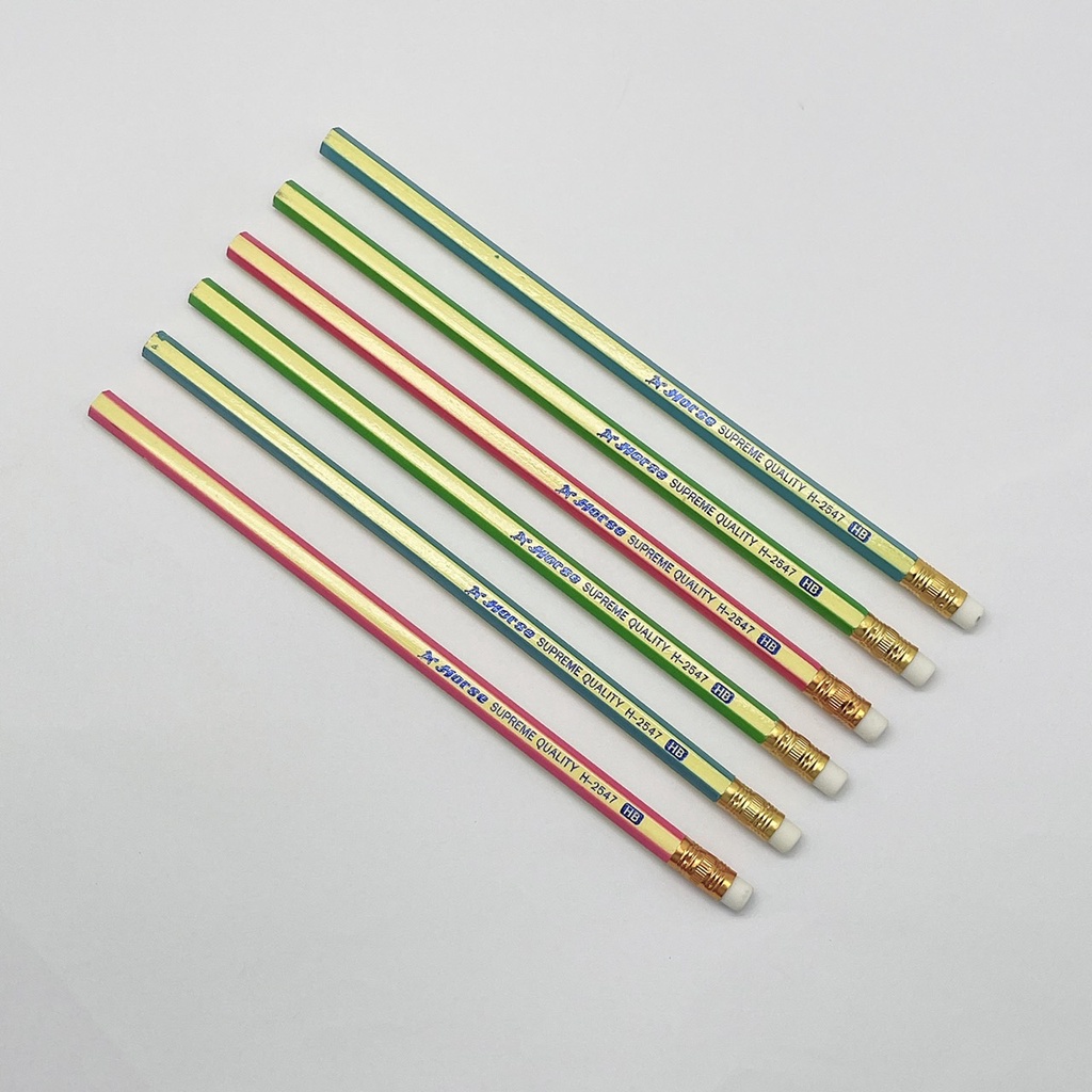 Horse ดินสอไม้ HB H-2547 แพ็ค 2 แท่ง คละสี