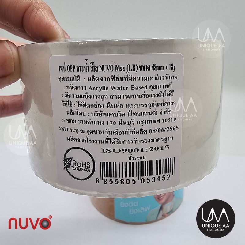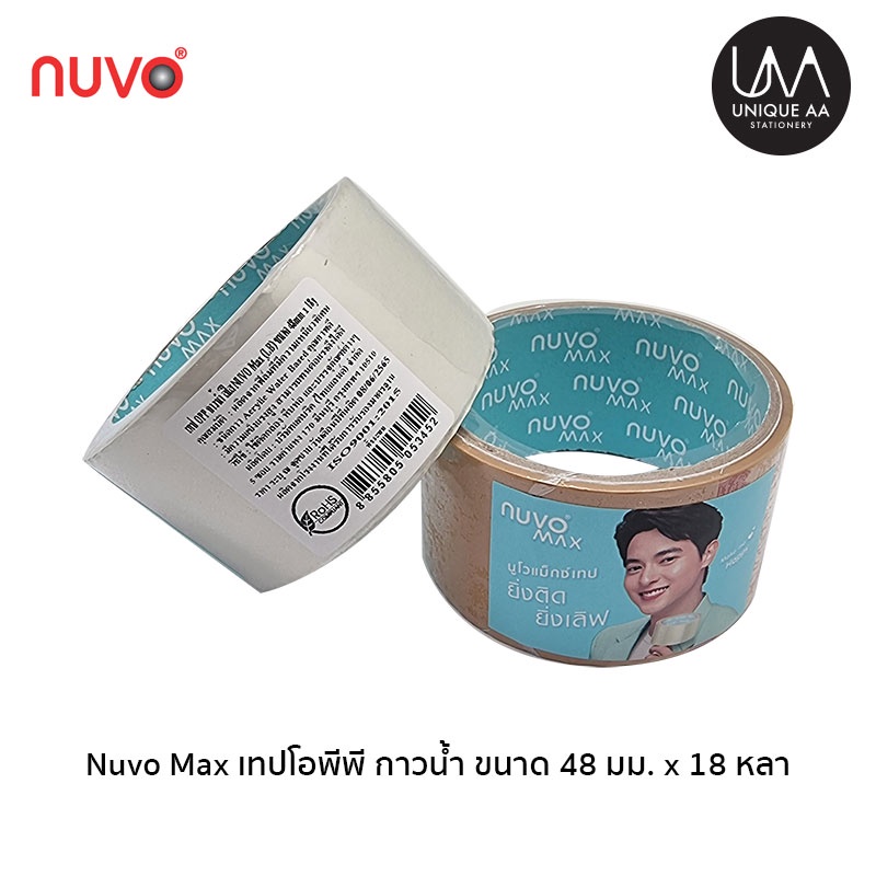Nuvo Max เทปปิดกล่อง เทปโอพีพี เทปกาวน้ำ 48 มม. x 18 หลา สีใส/สีชา