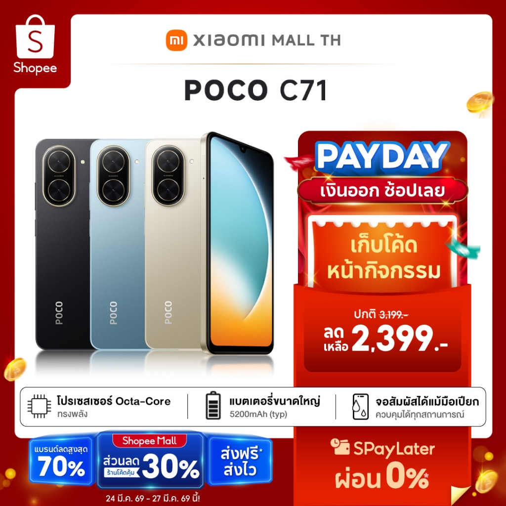 【ใหม่ล่าสุด】Xiaomi POCO C71 โทรศัพท์มือถือ โปรเซสเซอร์ Octa-Core ทรงพลัง หน้าจอ 6.88" แบตเตอรี่ขนาดใหญ่ 5200mAh