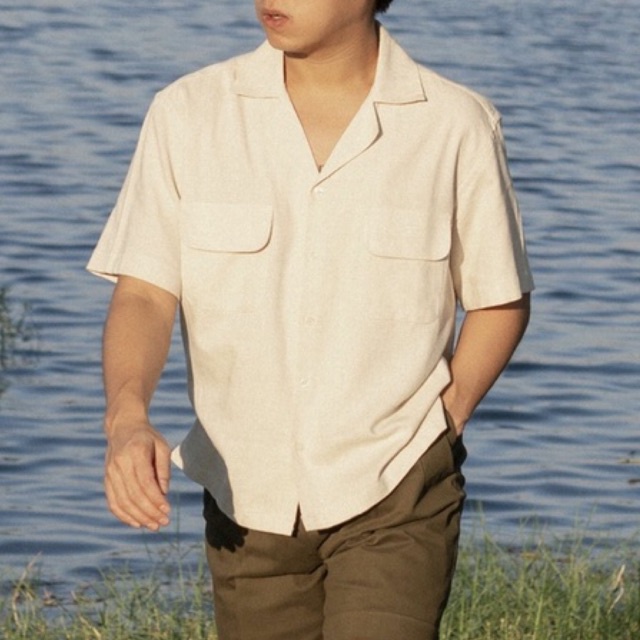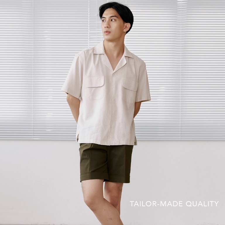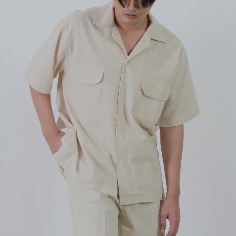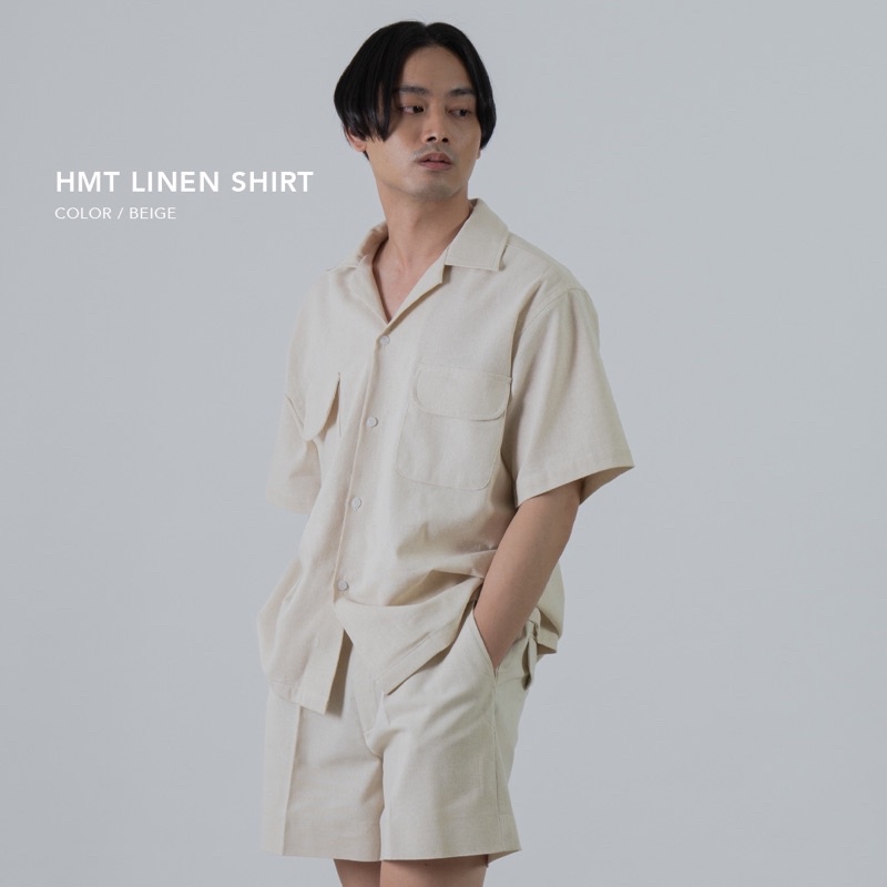 HMT เสื้อเชิ้ตลินินแขนสั้น unisex สีเบจ / Linen shirt - beige