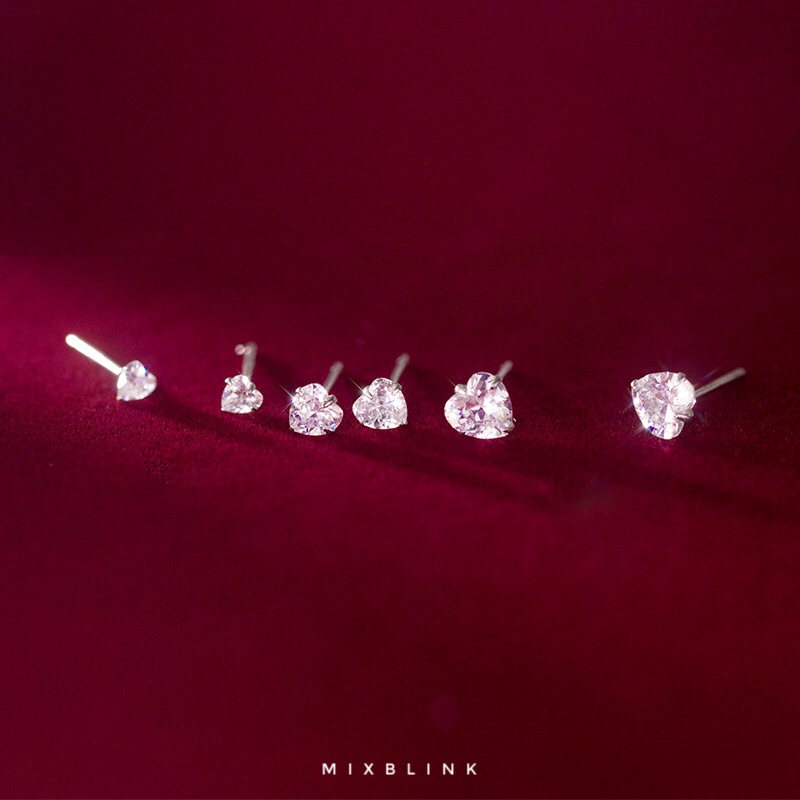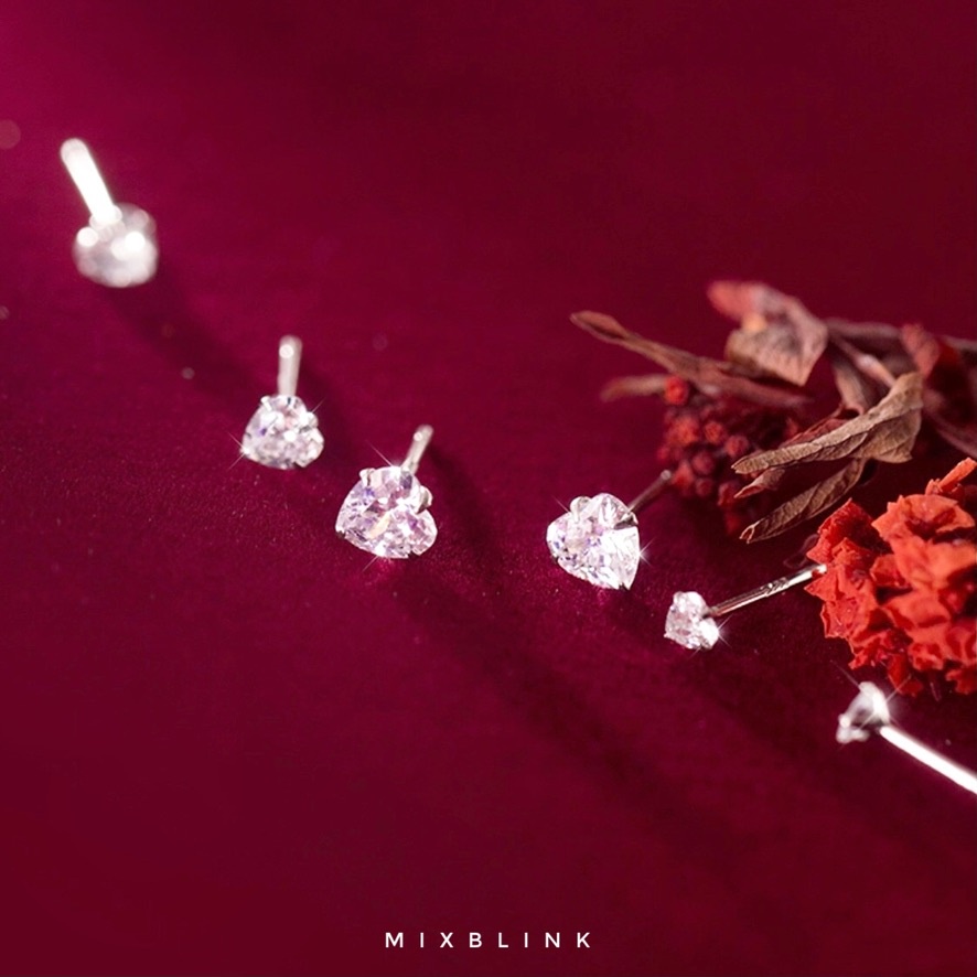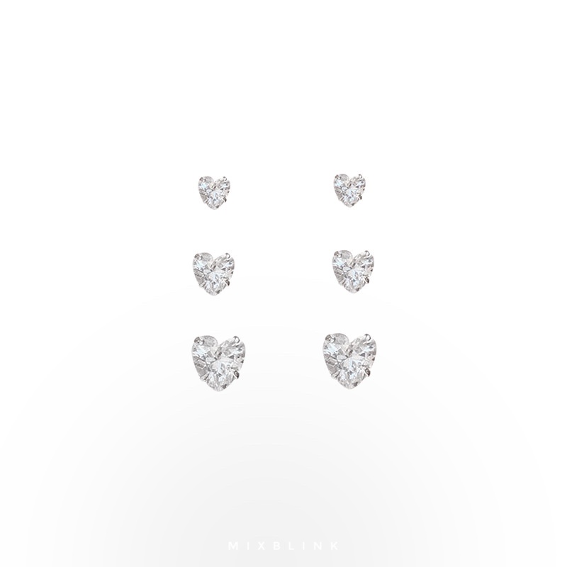 เซ็ทต่างหู เงินแท้ 92.5% ส่งฟรี EMS ♡ รุ่น Cream ♡ - 3 คู่ / เซ็ท หัวใจ เพชร cz ( #K12 )