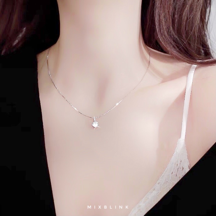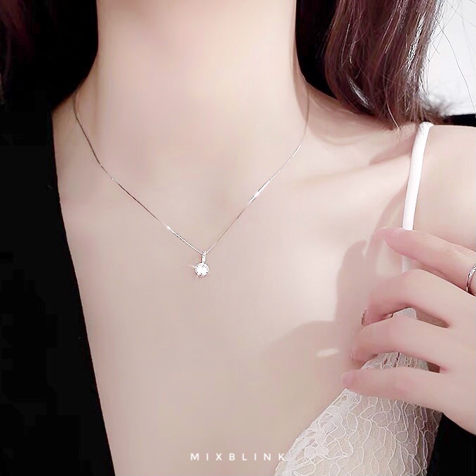 สร้อยคอ เงินแท้ 92.5% ส่งฟรี EMS ♡ รุ่น Mirror ♡ - จี้เพชร cz ( #L9 )