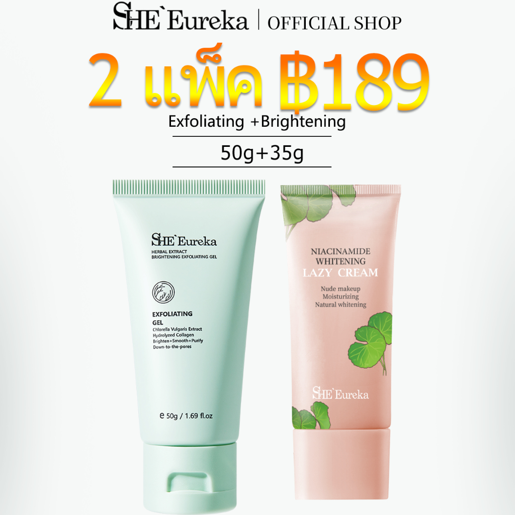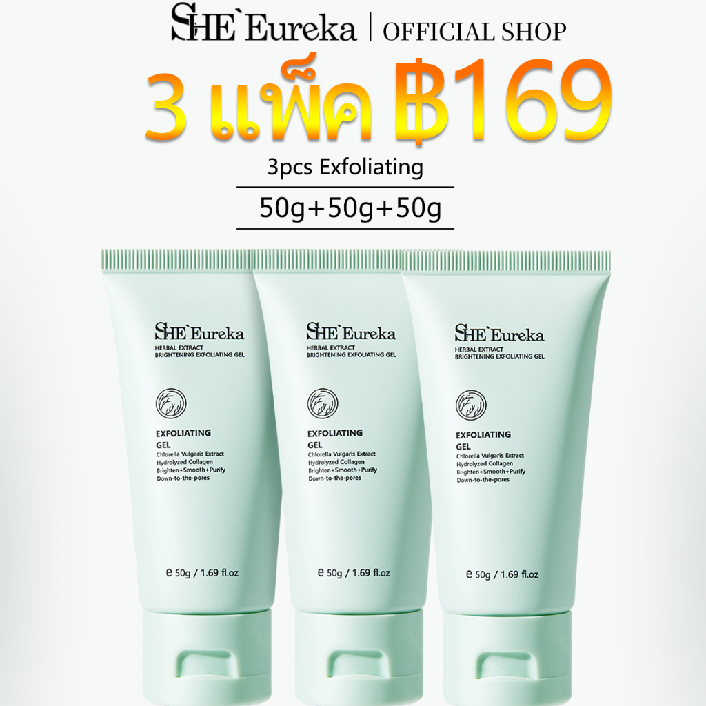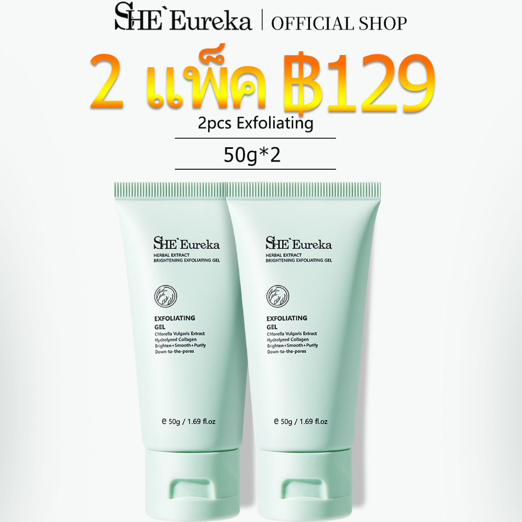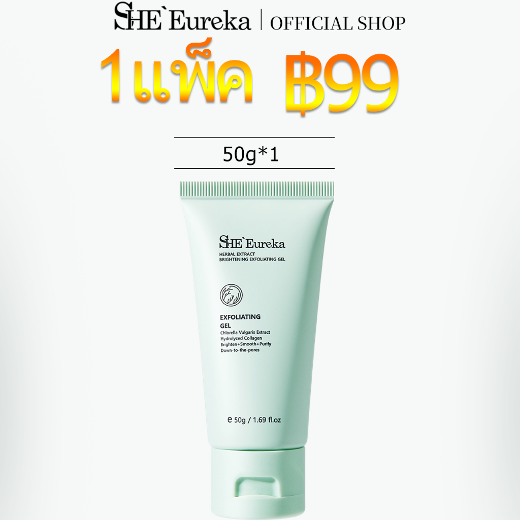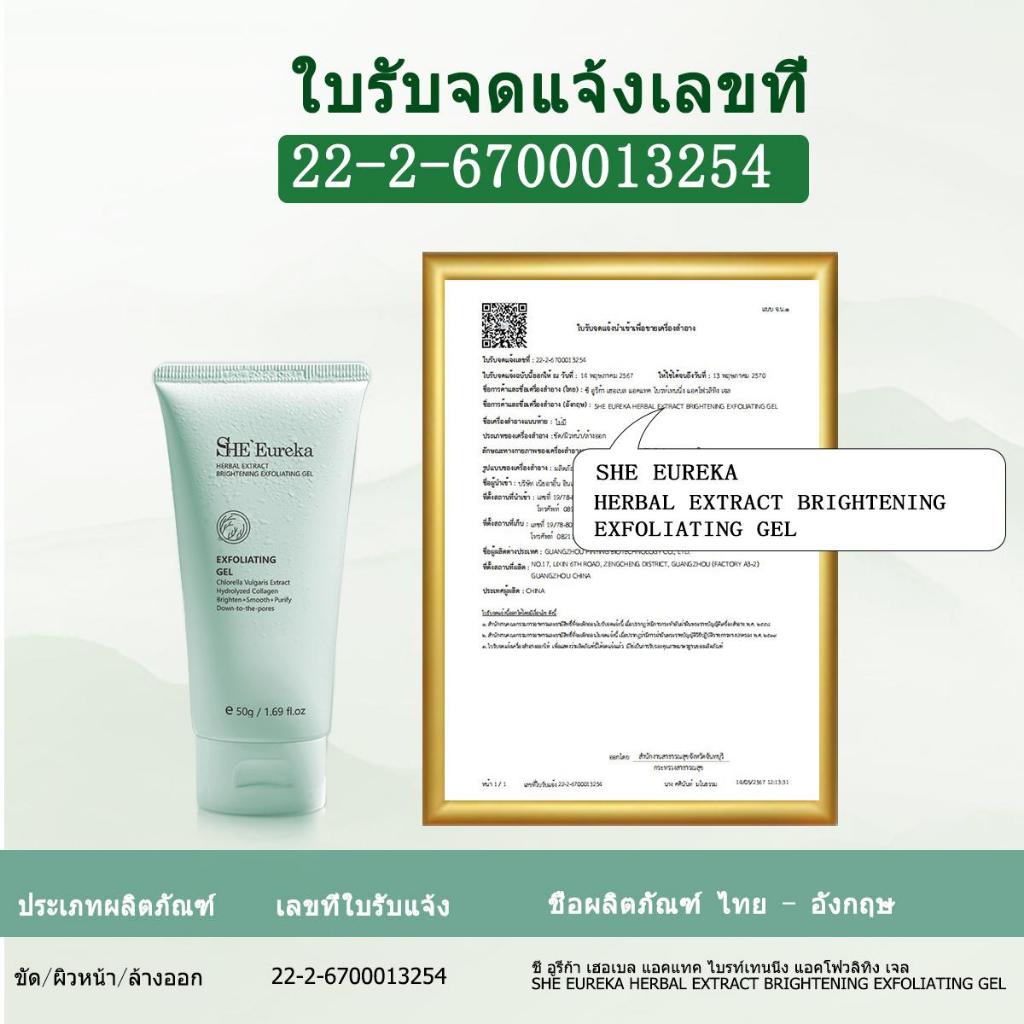【1 ชิ้น ฿99】 SHE Eureka สารสกัดจากสมุนไพร ไบรท์เทนนิ่ง Whitening exfoliating gel 50g เจลขัดผิว มีเอฟเฟกต์ให้ความชุ่มชื้น บำรุง ต่อต้านริ้วรอย ขัดผิวหน้าและผิวกาย สครับผิวขาว