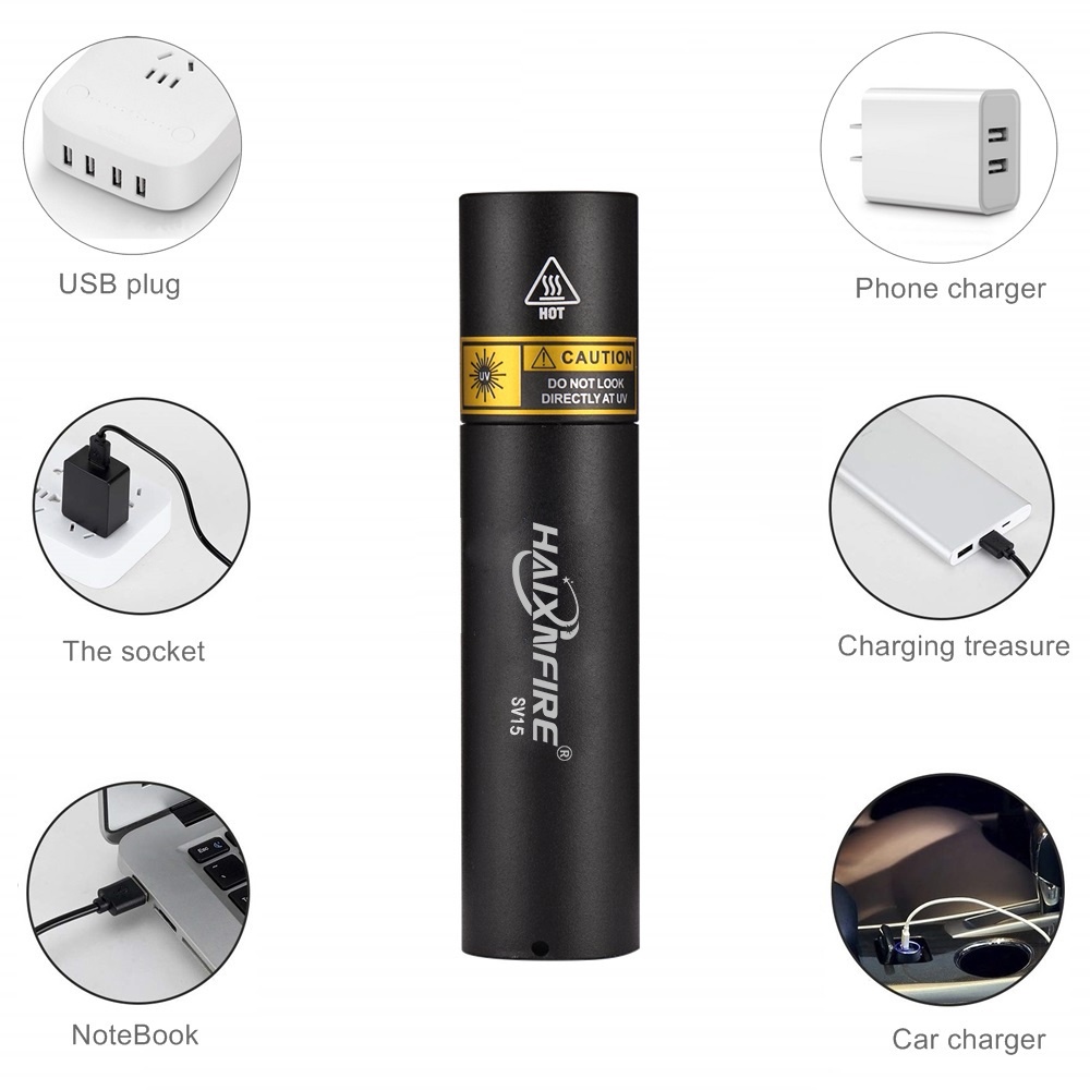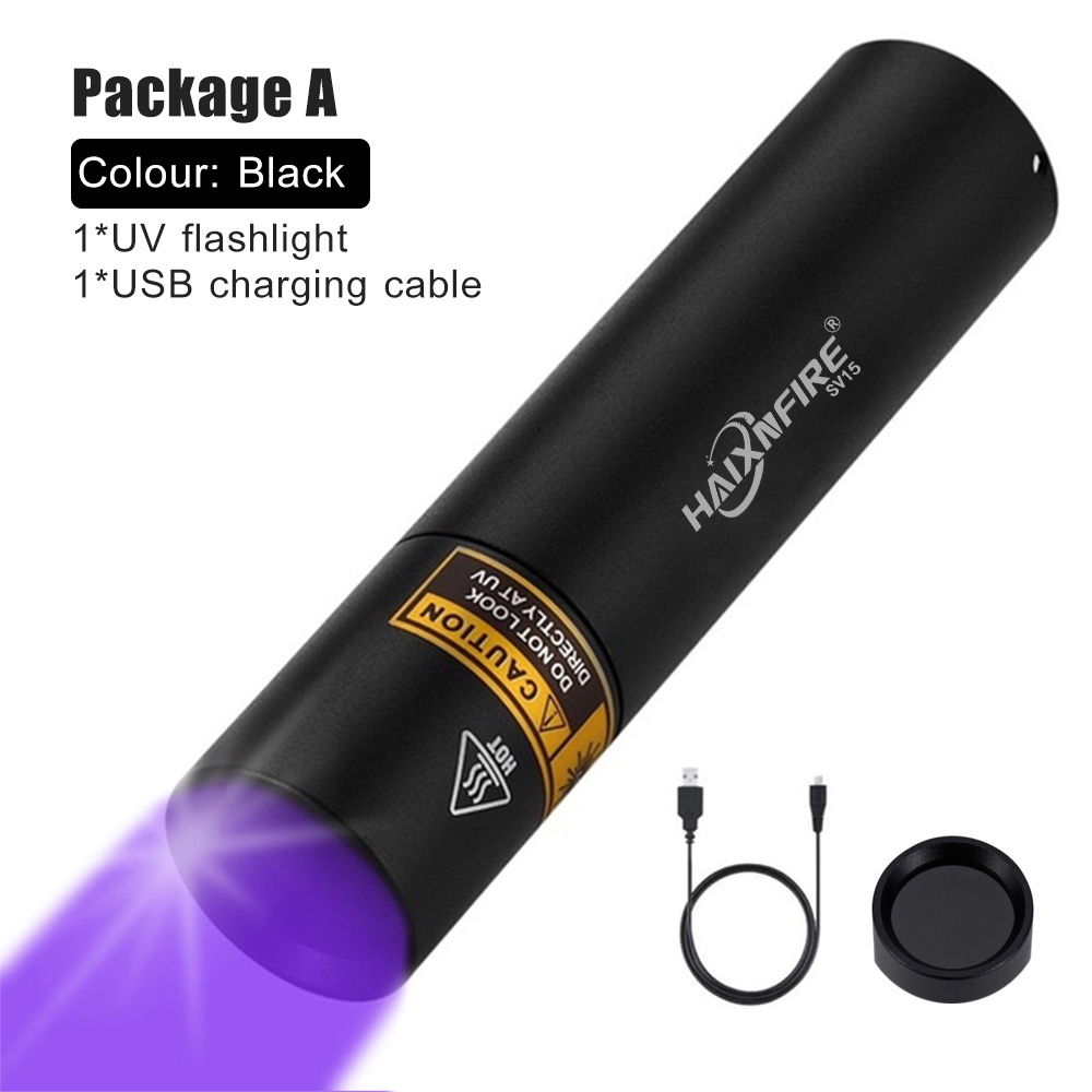 Haixnfire SV15 UV LED ไฟฉายแสงสีม่วง USB ชาร์จ Pet Cat Urine