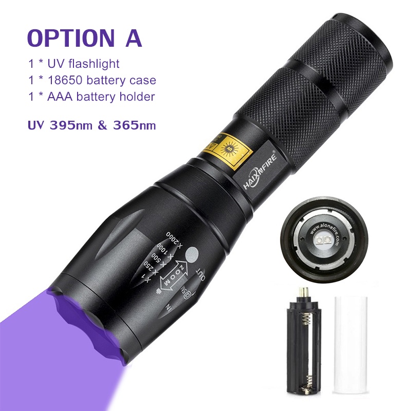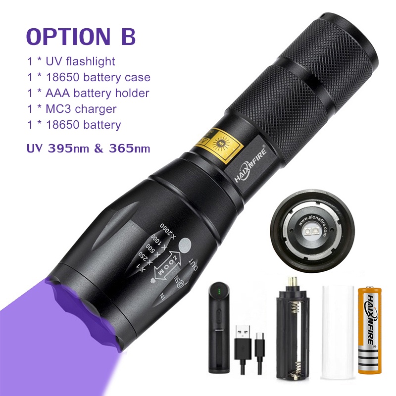 Haixnfire G700 395NM 365NM ไฟฉาย LED UV ไฟฉายสีม่วง ไฟฉายอัลตราไวโอเลต