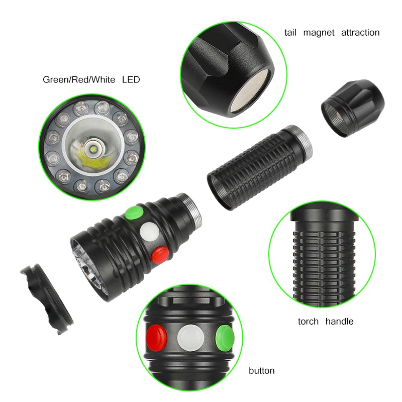 Haixnfire RX1 สีแดงสีขาวสีเขียวไฟฉาย LED ไฟตั้งแคมป์