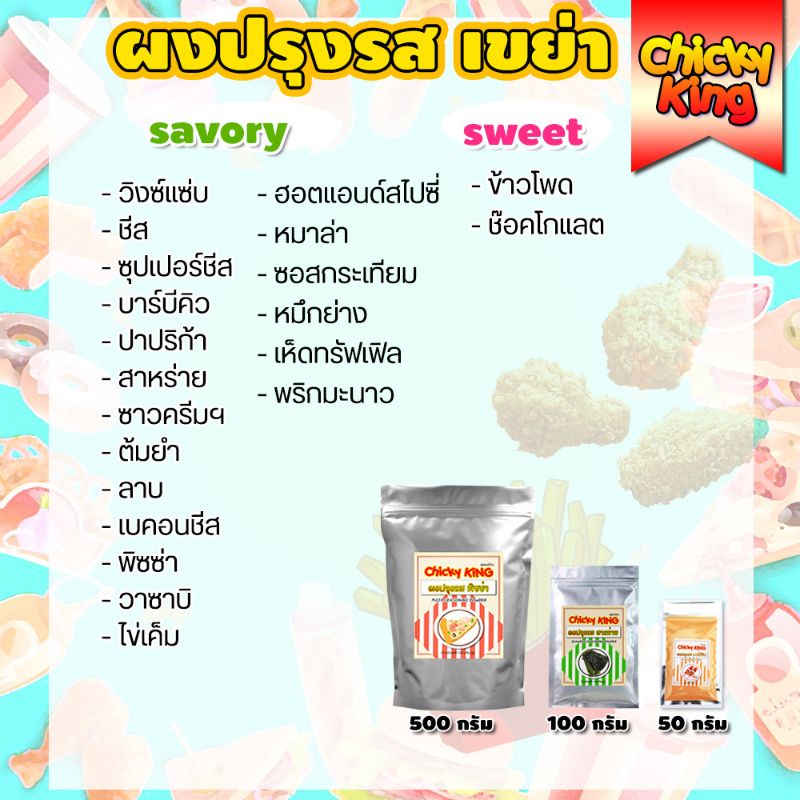 ผงปรุงรสเขย่าขนาด 500 กรัม 20 รสชาติ ผงปรุงรส ชนิดเข้มข้น ชีส บาร์บีคิว ปาปริก้า ลาบ ต้มยำ อื่นๆ chicky king ®
