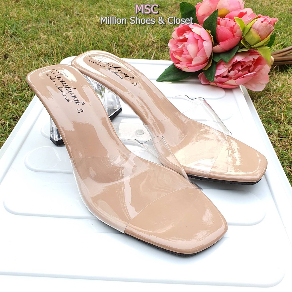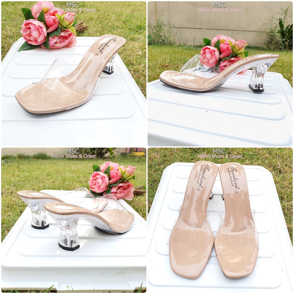 [ไซส์38 ล้างสต็อคขาดทุน] ขายดีอันดับ1"งานแท้100%" Candy clear ส้นสูง ส้นใส สีหวาน สูง2.5นิ้ว [TNK] CC1