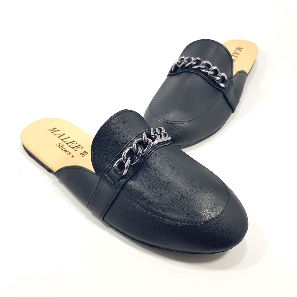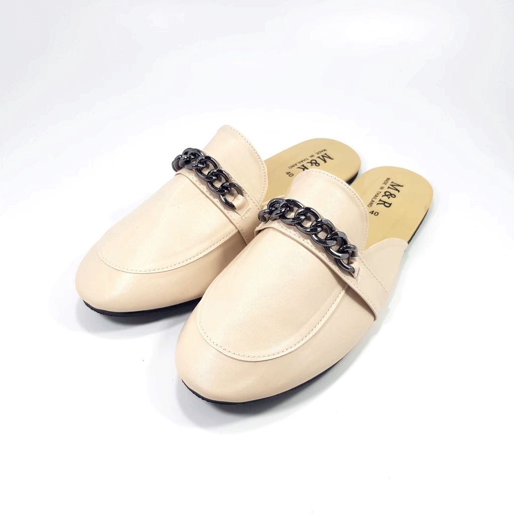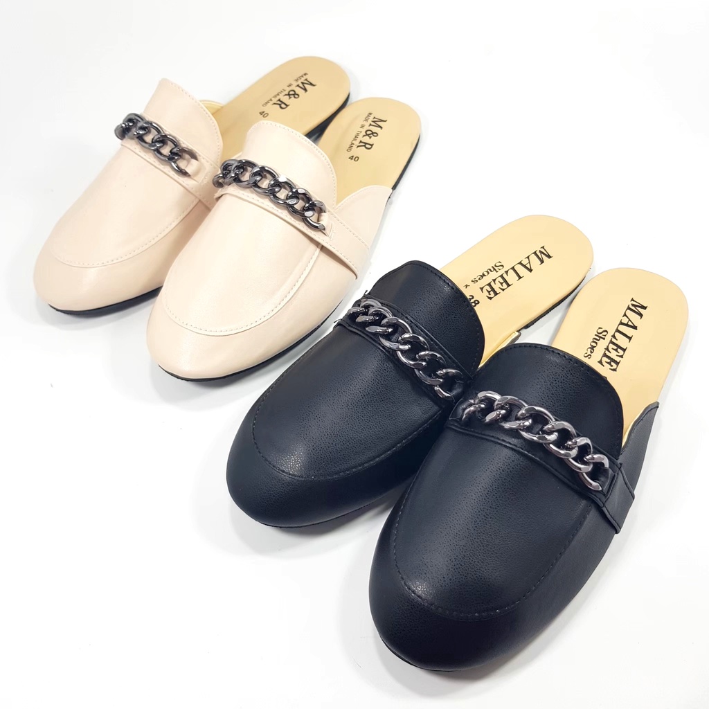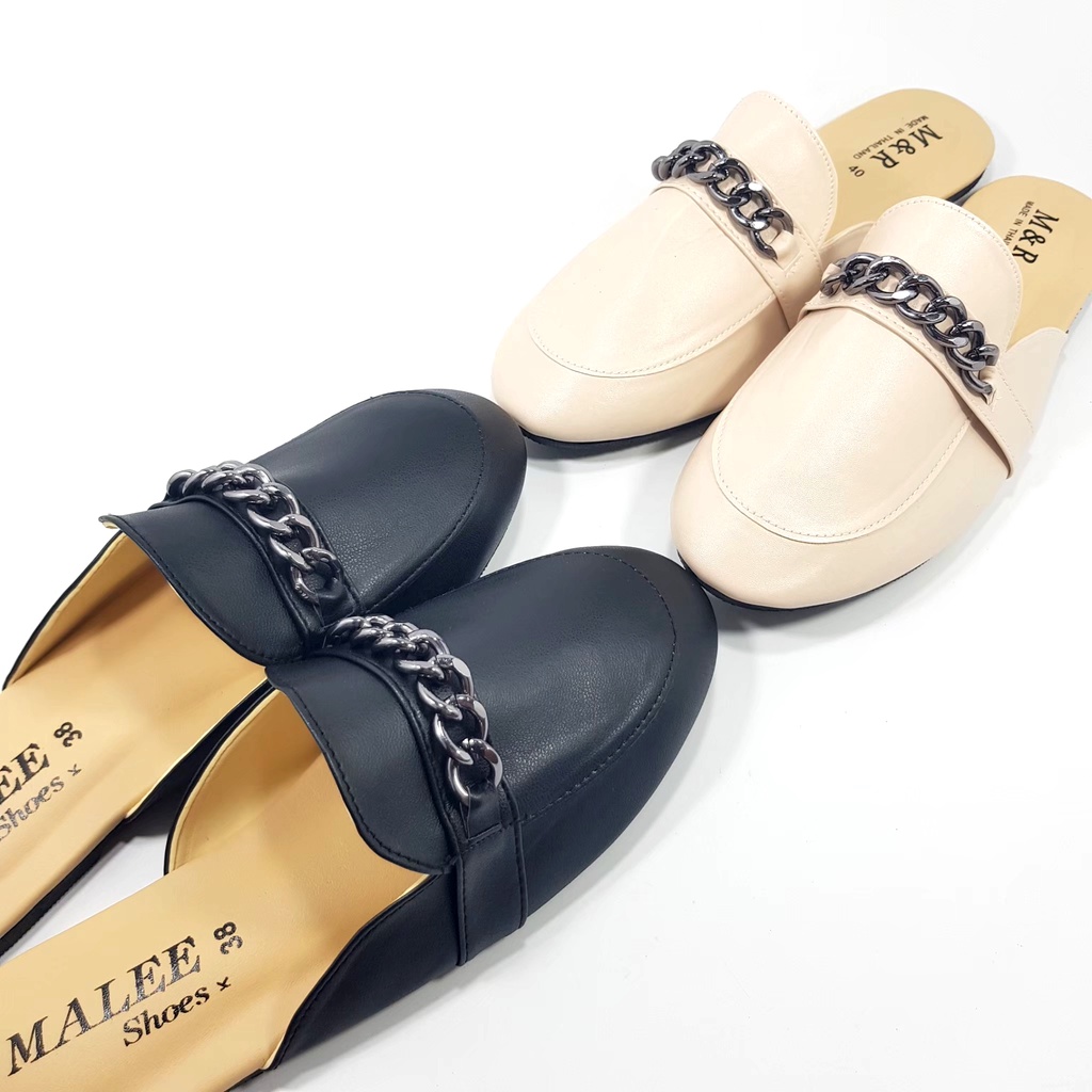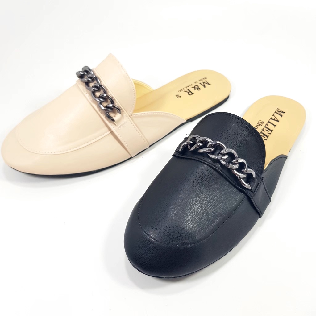 [ล้างสต็อคขาดทุน] [Mules] Sz.36-40 สวมเปิดส้น สไตล์เอสปาดริล โซ่เงินโครเมี่ยม B48 [ML]