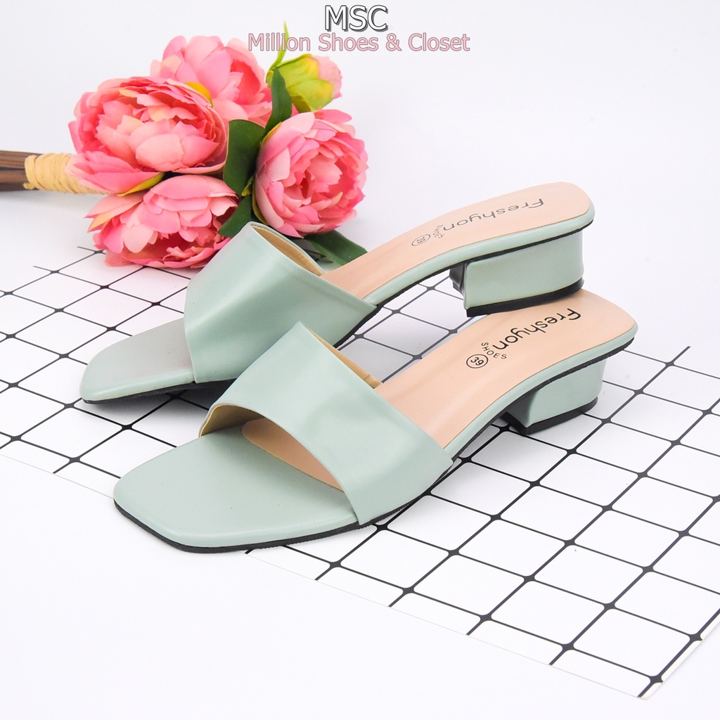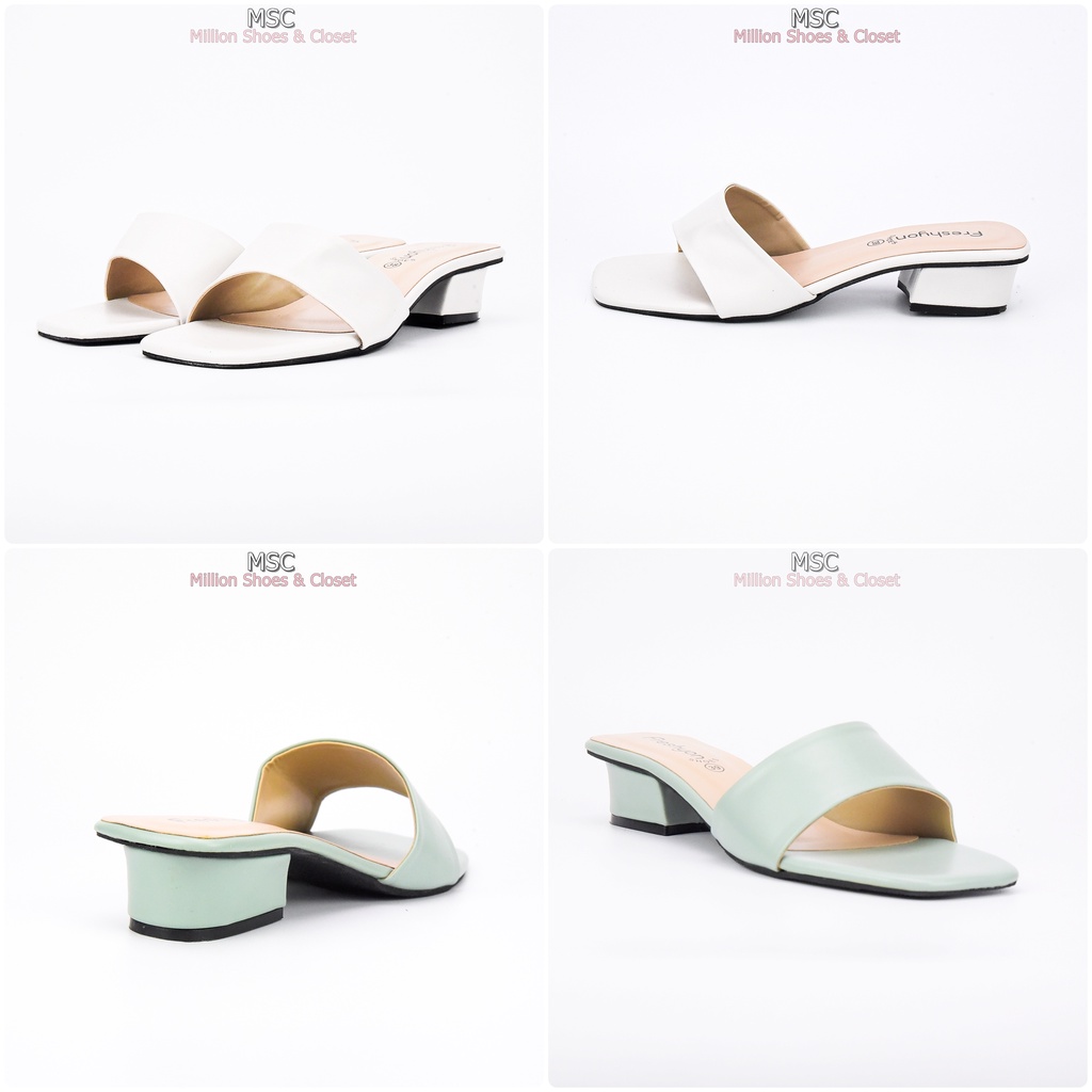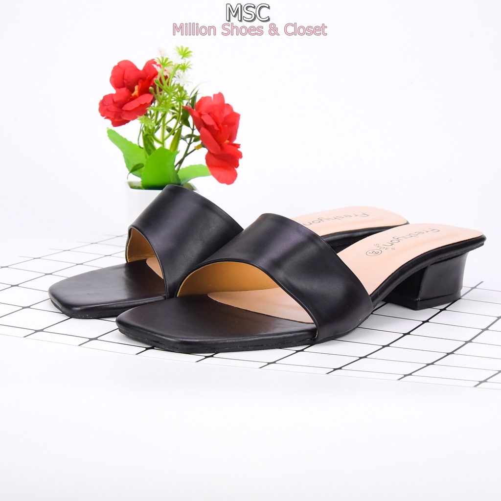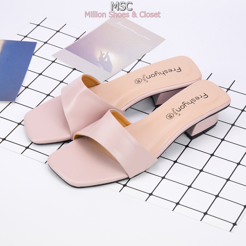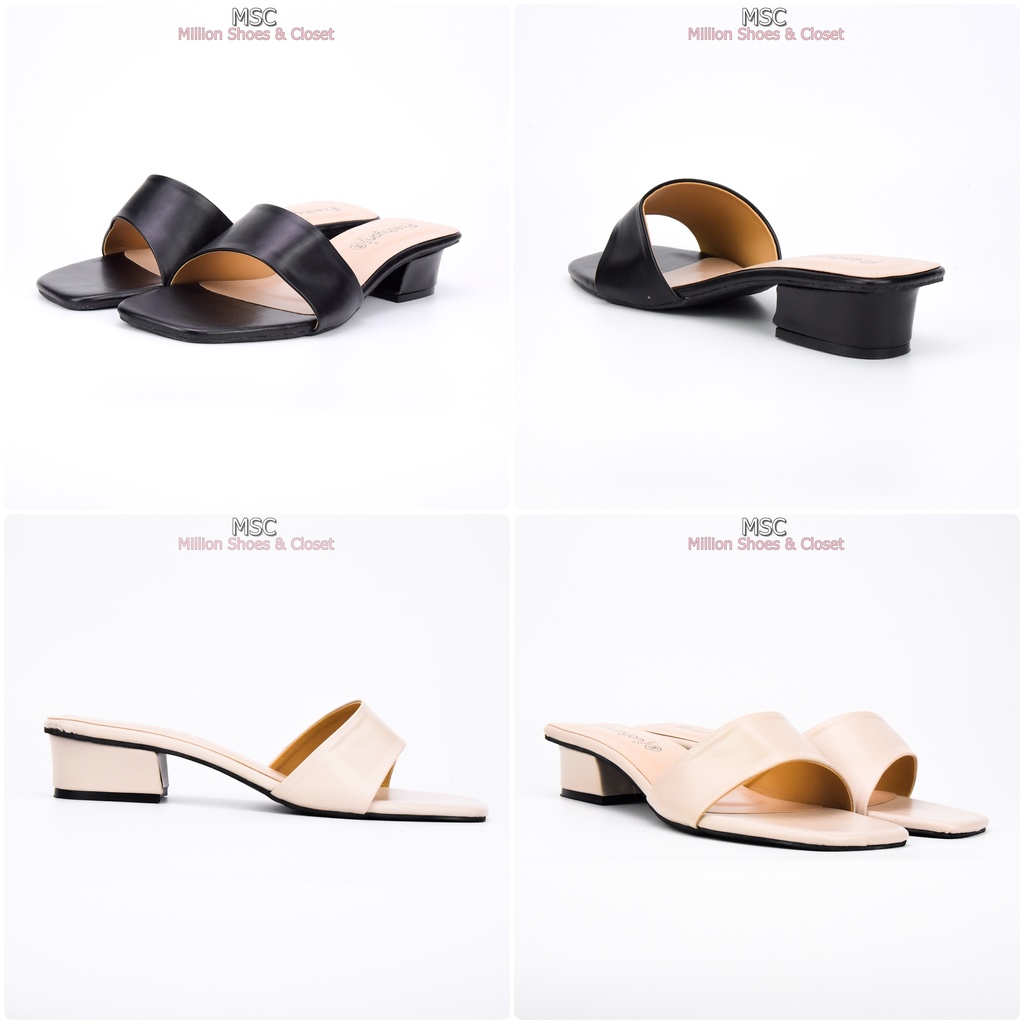 [รับCode12%⚡เพียงกดติดตามร้าน❤️] MAXi หน้าเฉียง ทรงสวม ส้นเหลี่ยม หนังนิ่ม มีสไตล์ ส้นสูง1.3นิ้ว [FS]