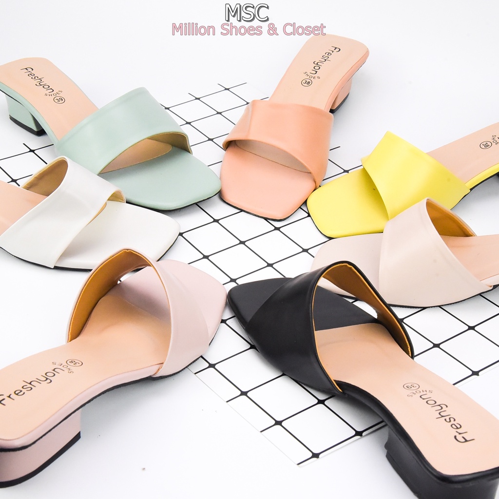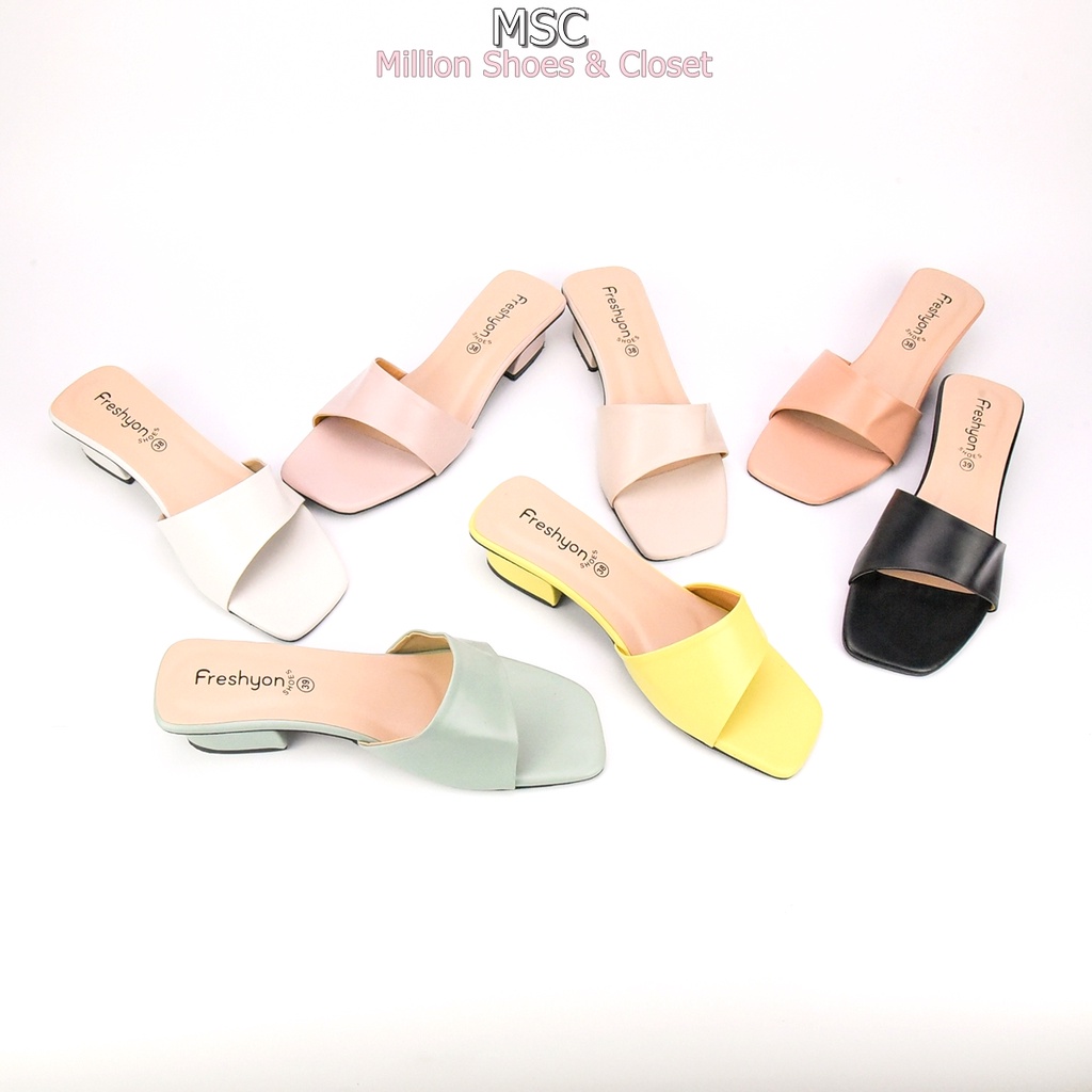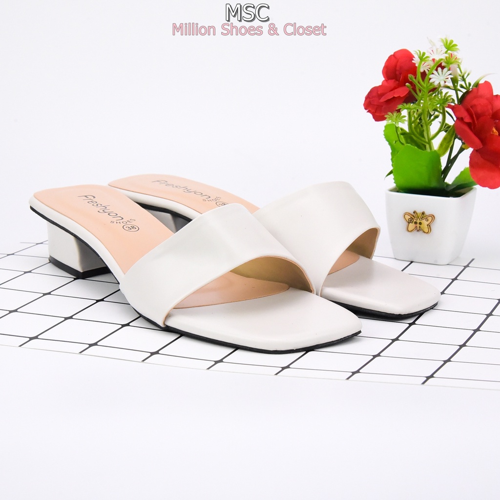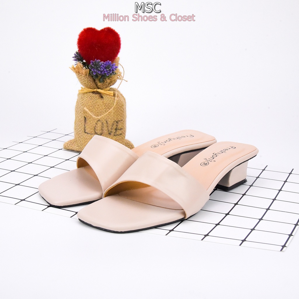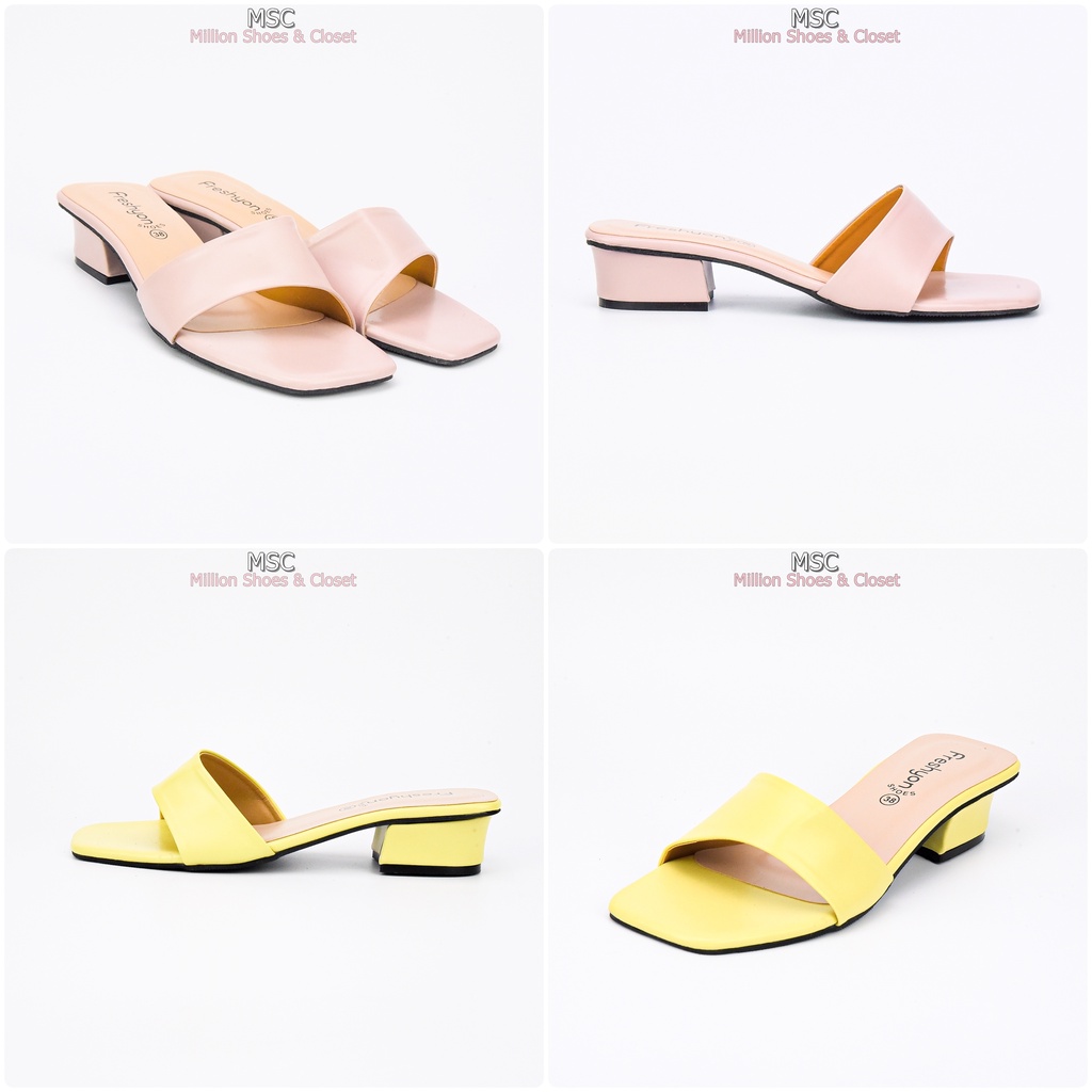[รับCode12%⚡เพียงกดติดตามร้าน❤️] MAXi หน้าเฉียง ทรงสวม ส้นเหลี่ยม หนังนิ่ม มีสไตล์ ส้นสูง1.3นิ้ว [FS]