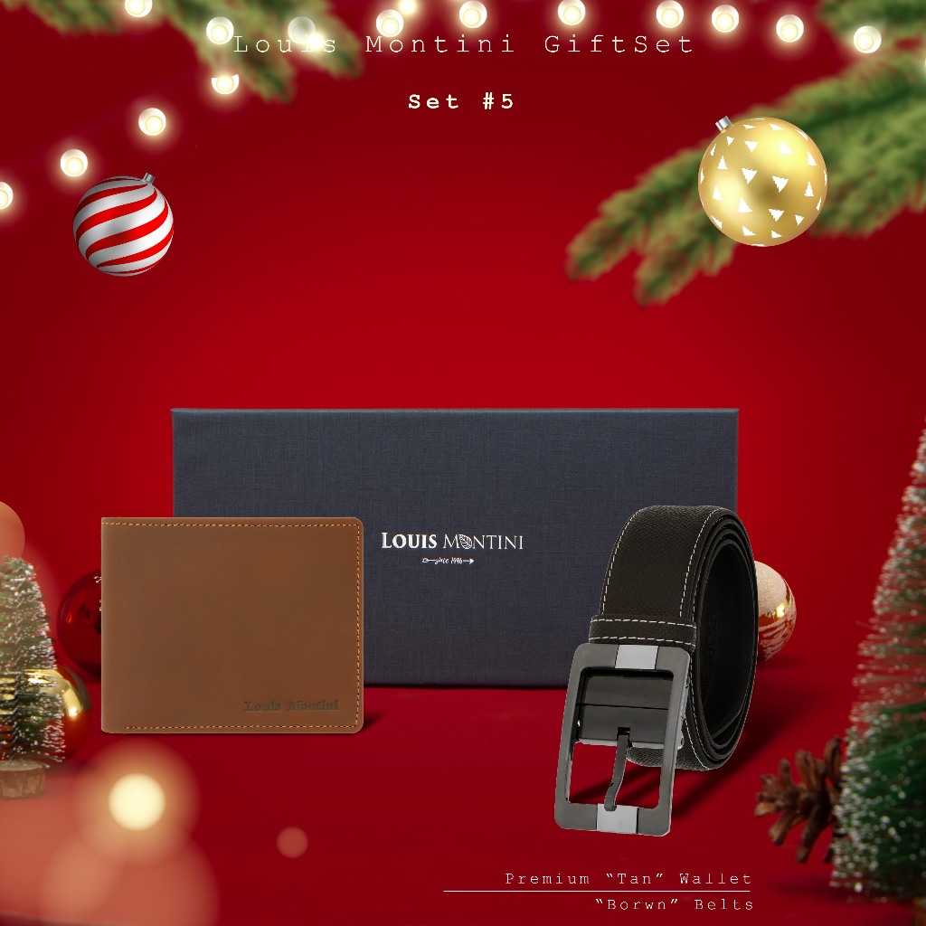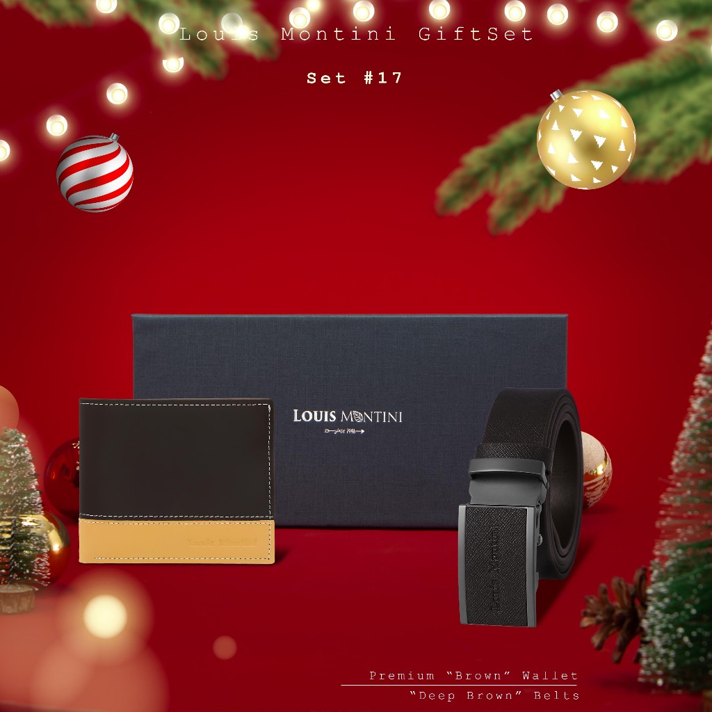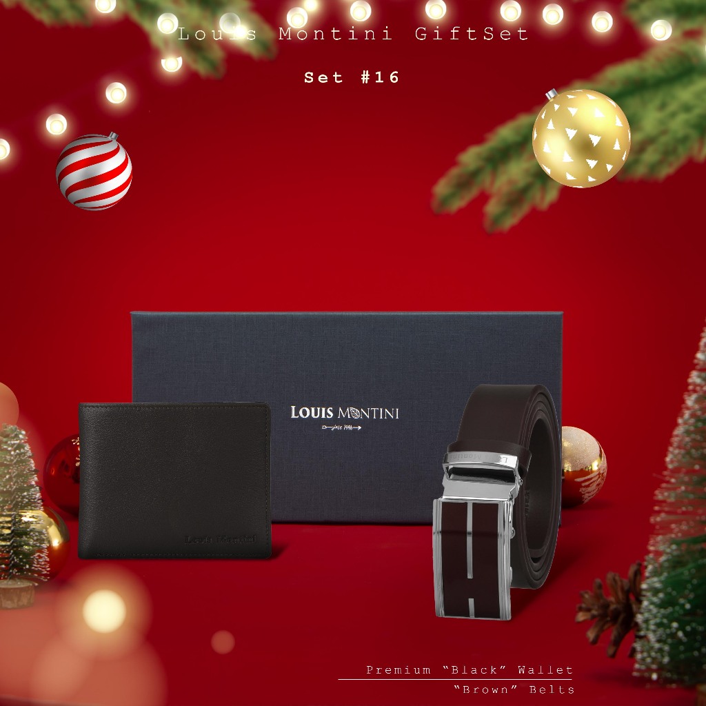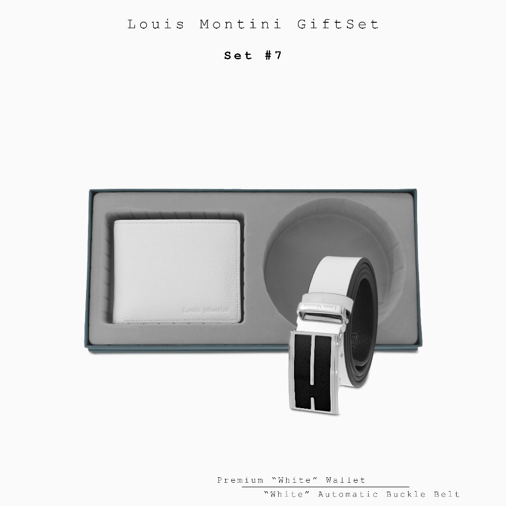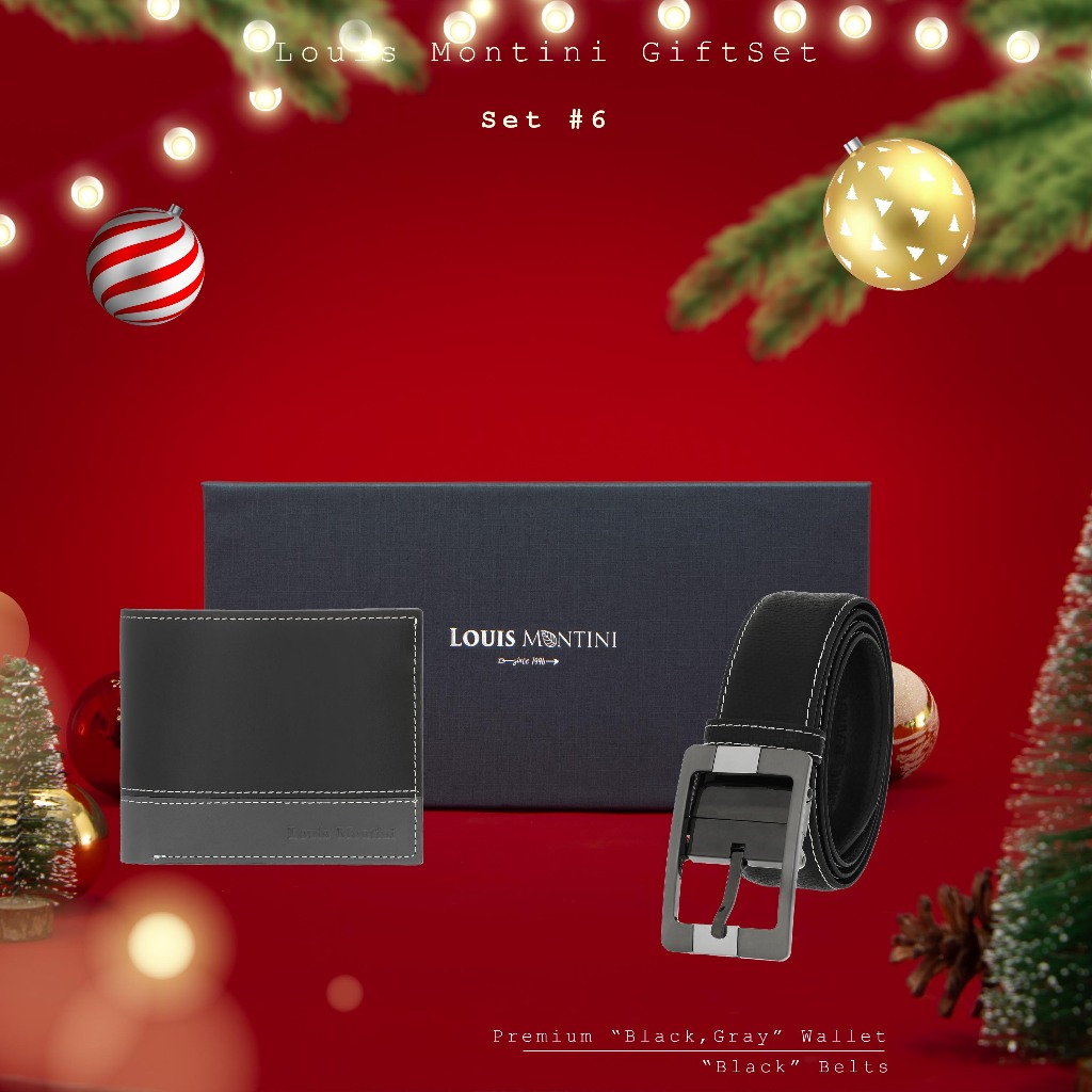 [ส่งด่วนฟรี] Louis Montini Gift Set Boxset Wallet and Belt ชุดกิ๊ฟเซ็ท กระเป๋าสตางค์ และ เข็มขัดหนังแท้ LM-GS#1
