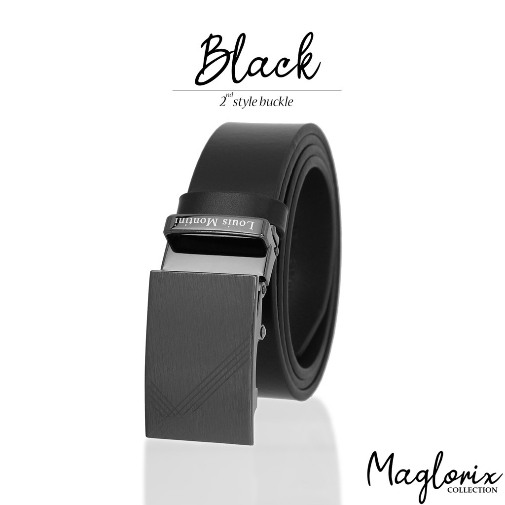 [ส่งด่วนฟรี] Louis Montini Automatic เข็มขัดหนังวัวแท้ หัวออโต้เมติค เข็มขัดหนังแท้ หนังเรียบ MGN369