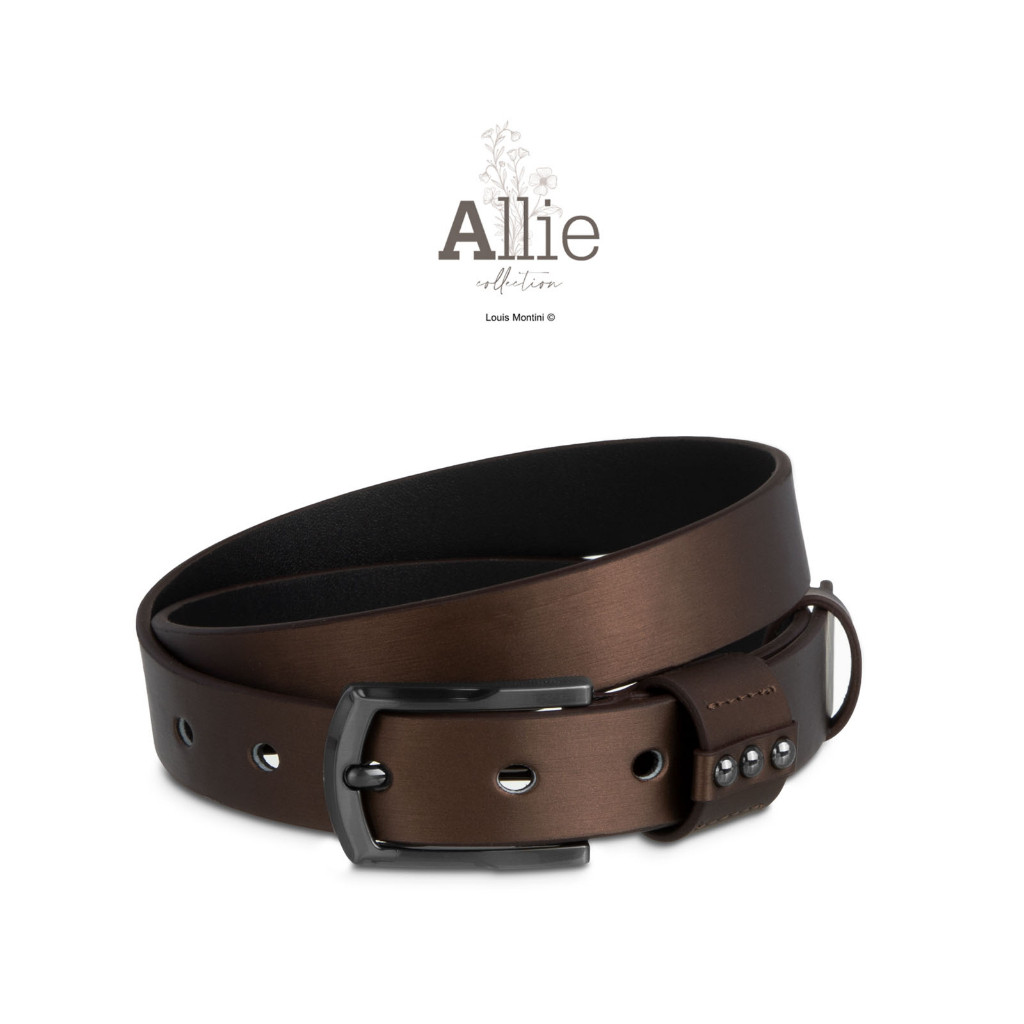 Louis Montini (Allie) เข็มขัดผู้หญิง หนัง PU มุก คุณภาพดี เข็มขัดแฟชั่น นู้ดโทน MPU11