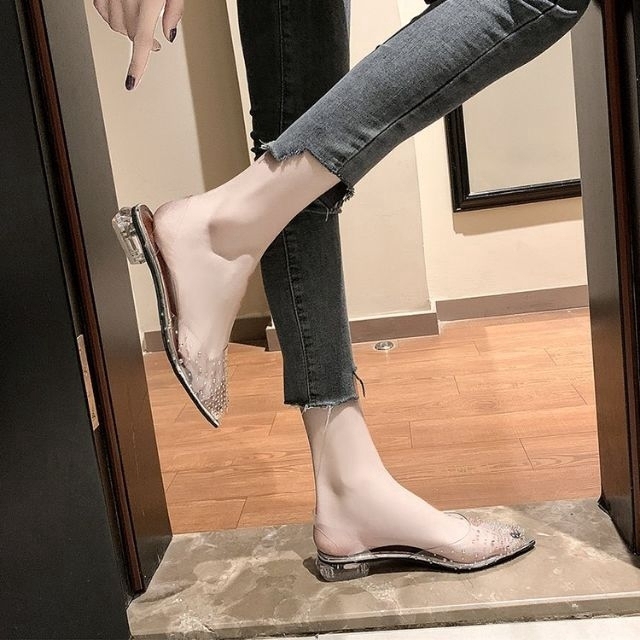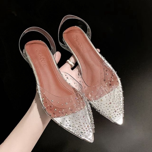 [พร้อมส่ง] ส้นสูง 1.5 นิ้ว 35-42 รองเท้าแตะ size 35-42 Diamond Flat ส้นใส แต่งเพชร สวยๆมาแล้วจ้า 916