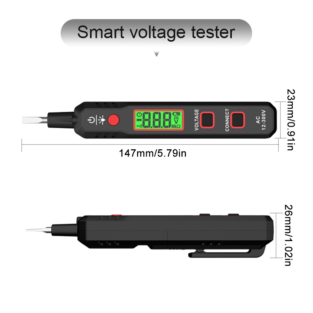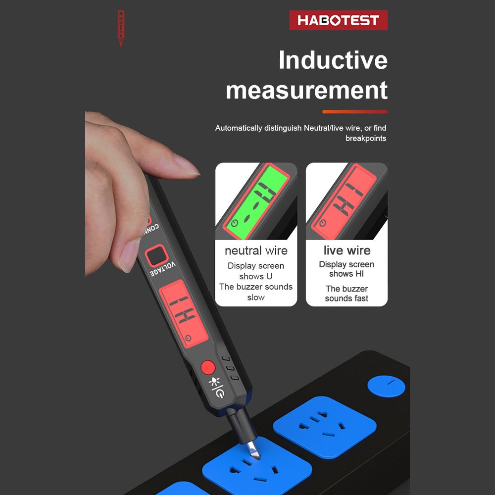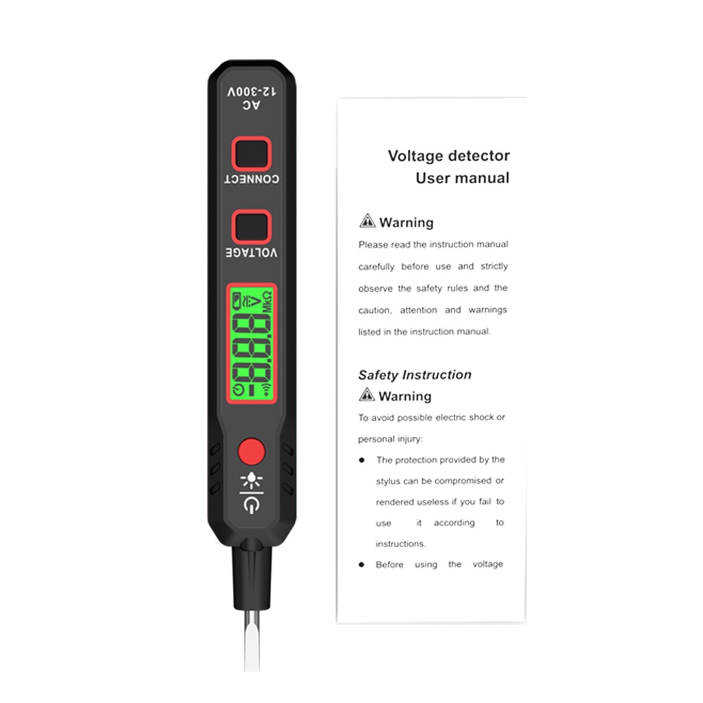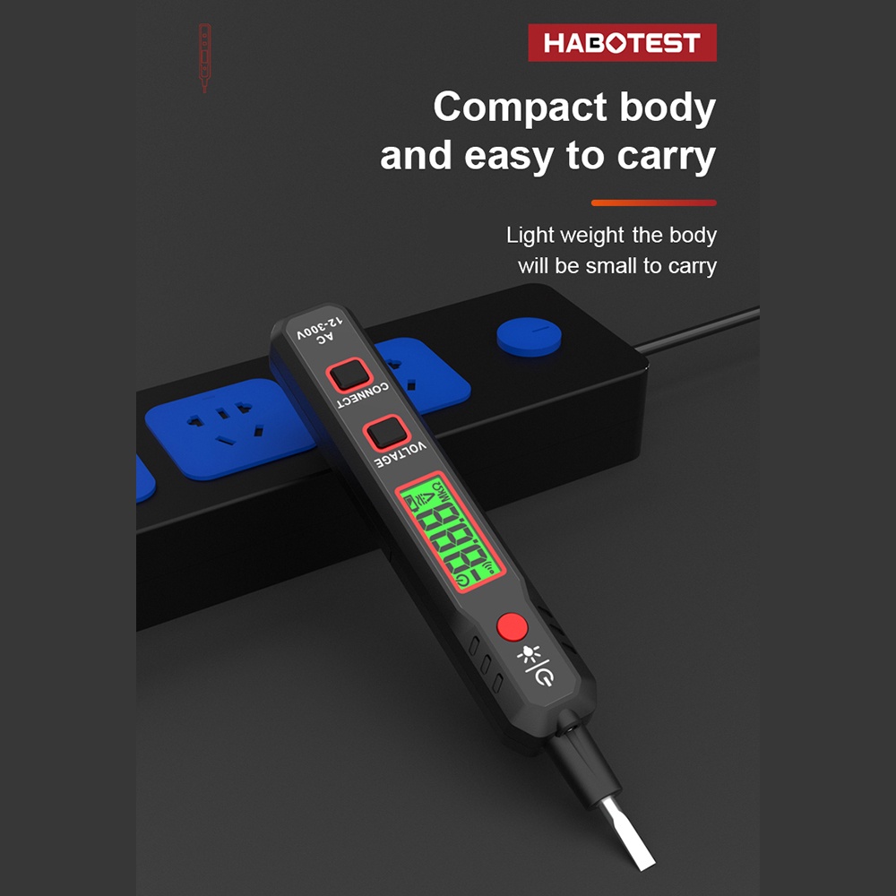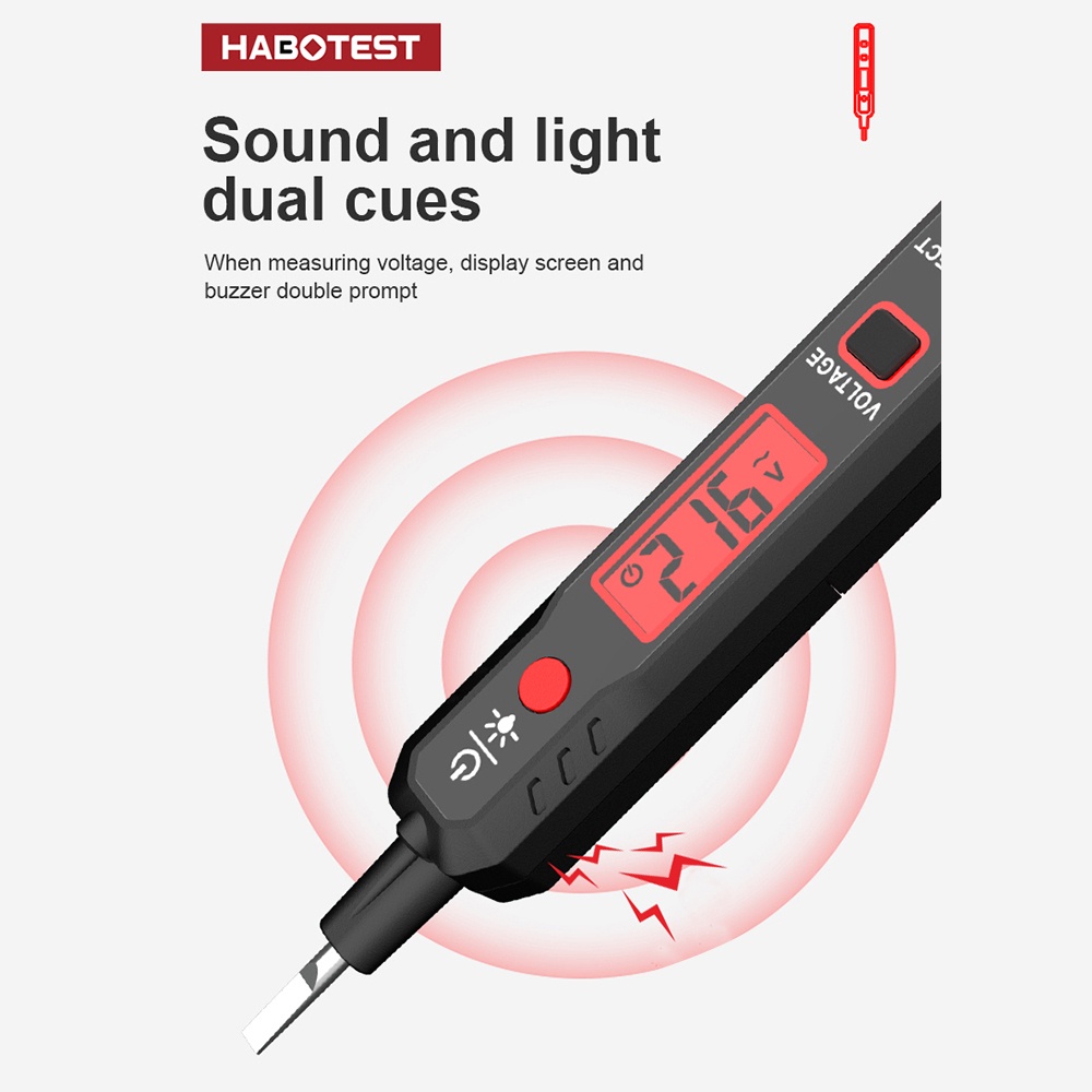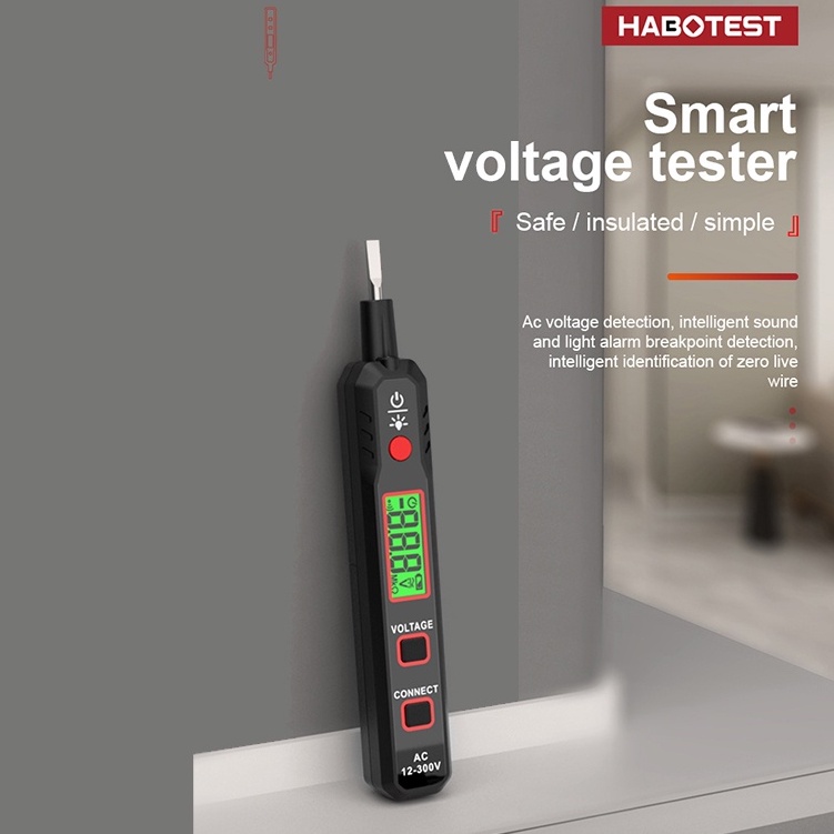 T&h HABOTEST HT89 เครื่องทดสอบแรงดันไฟฟ้า AC 12~300V ไม่สัมผัส ตรวจจับแรงดันไฟฟ้า สําหรับ ถ่ายทอดสด กล่อม พร้อมไฟฉาย หน้าจอ LCD ค้นหาจุดบกพร่อง พร้อมเสียง และสัญญาณเตือนไฟ