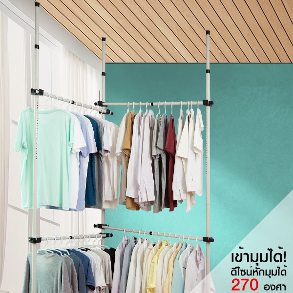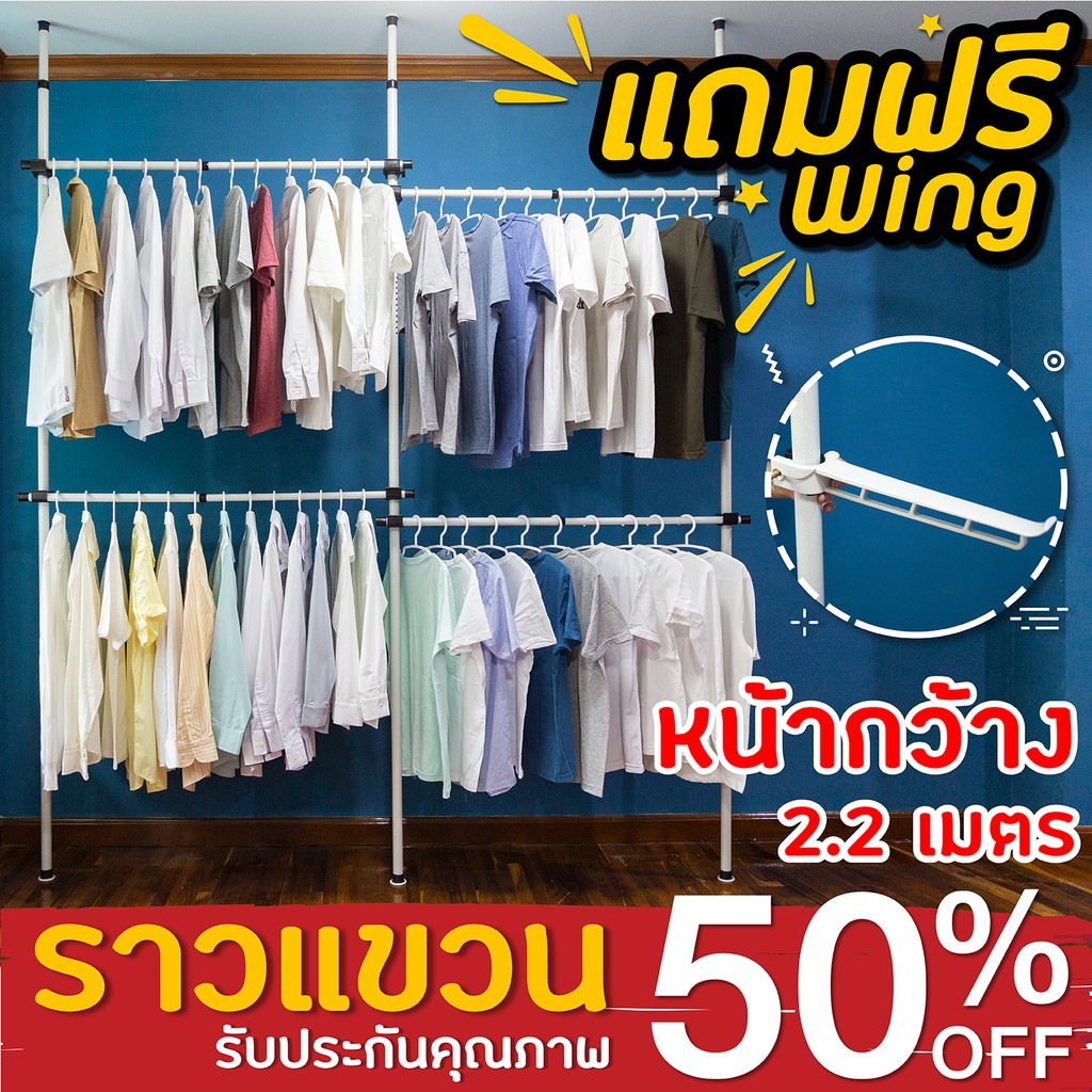 TUGU ราวแขวนเสื้อ ราวแขวนผ้า ราวแขวนไม่ต ้องเจาะ ชุดกลาง ขายดี ประกอบง่าย แถมฟรี วิงแขวน ไม้สอยผ้า