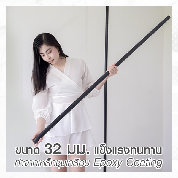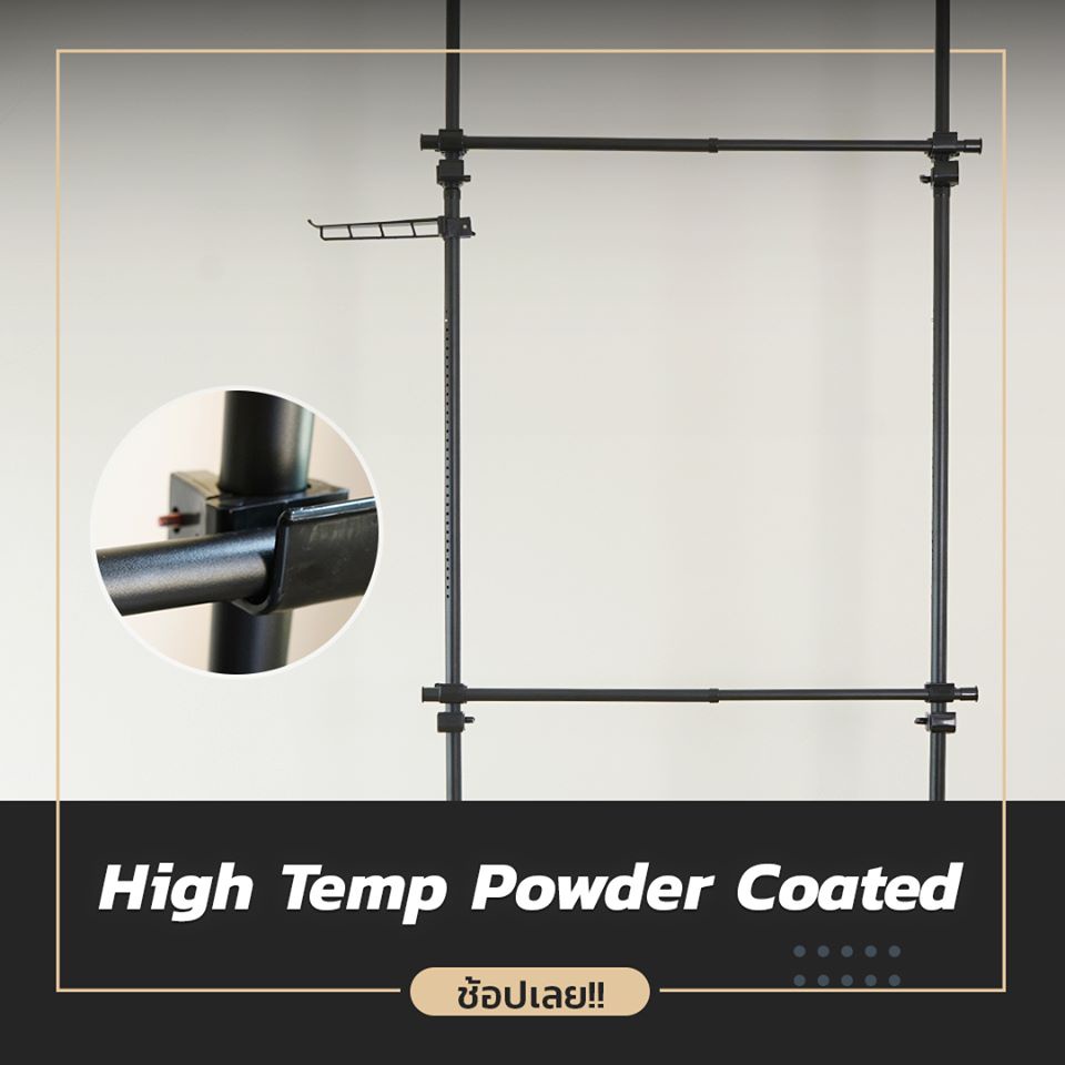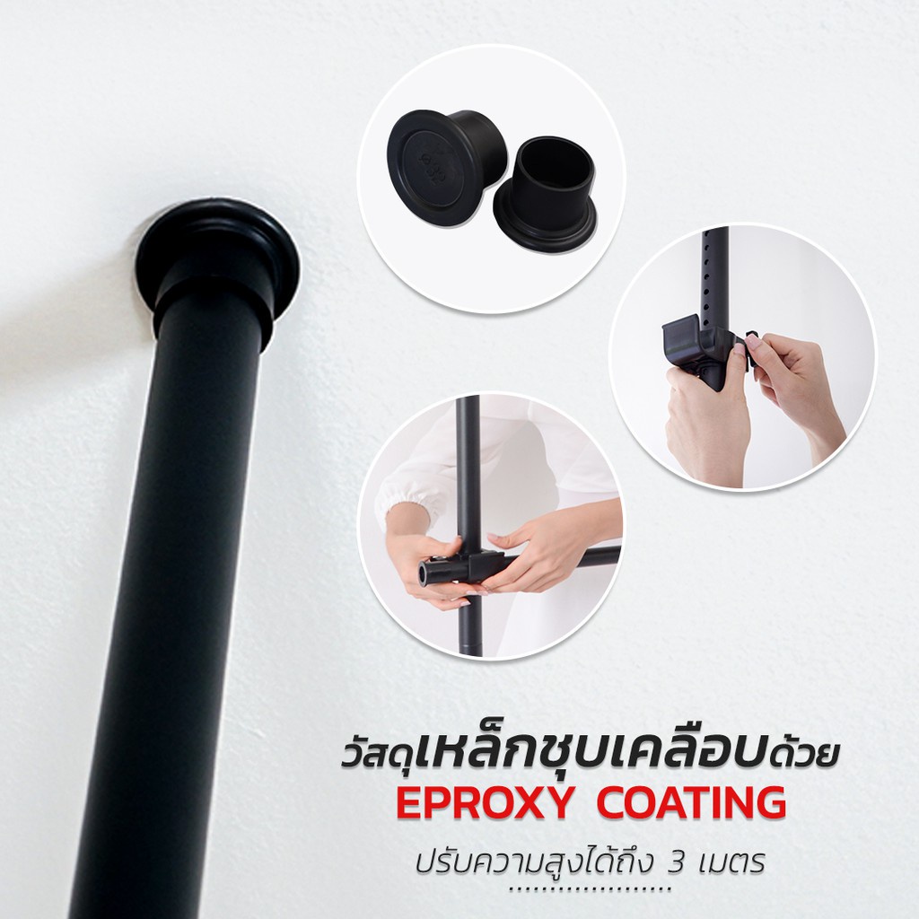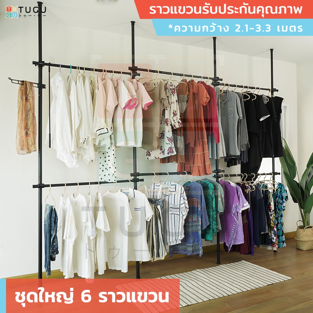 TUGU ราวแขวนเสื้อ ราวแขวนผ้า ไม่ต้องเจาะ ชุดใหญ่ 6 ราว สีดำ (R01B) แถมฟรี วิงแขวน ไม้สอยผ้า