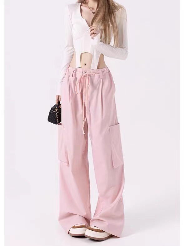 **พร้อมส ่งในไทย** กางเกงคาร์โก้ผู้หญิง กางเกงเอวต่ำ y2k มีทั้งหมด4สี มีเชือกที่เอว K7