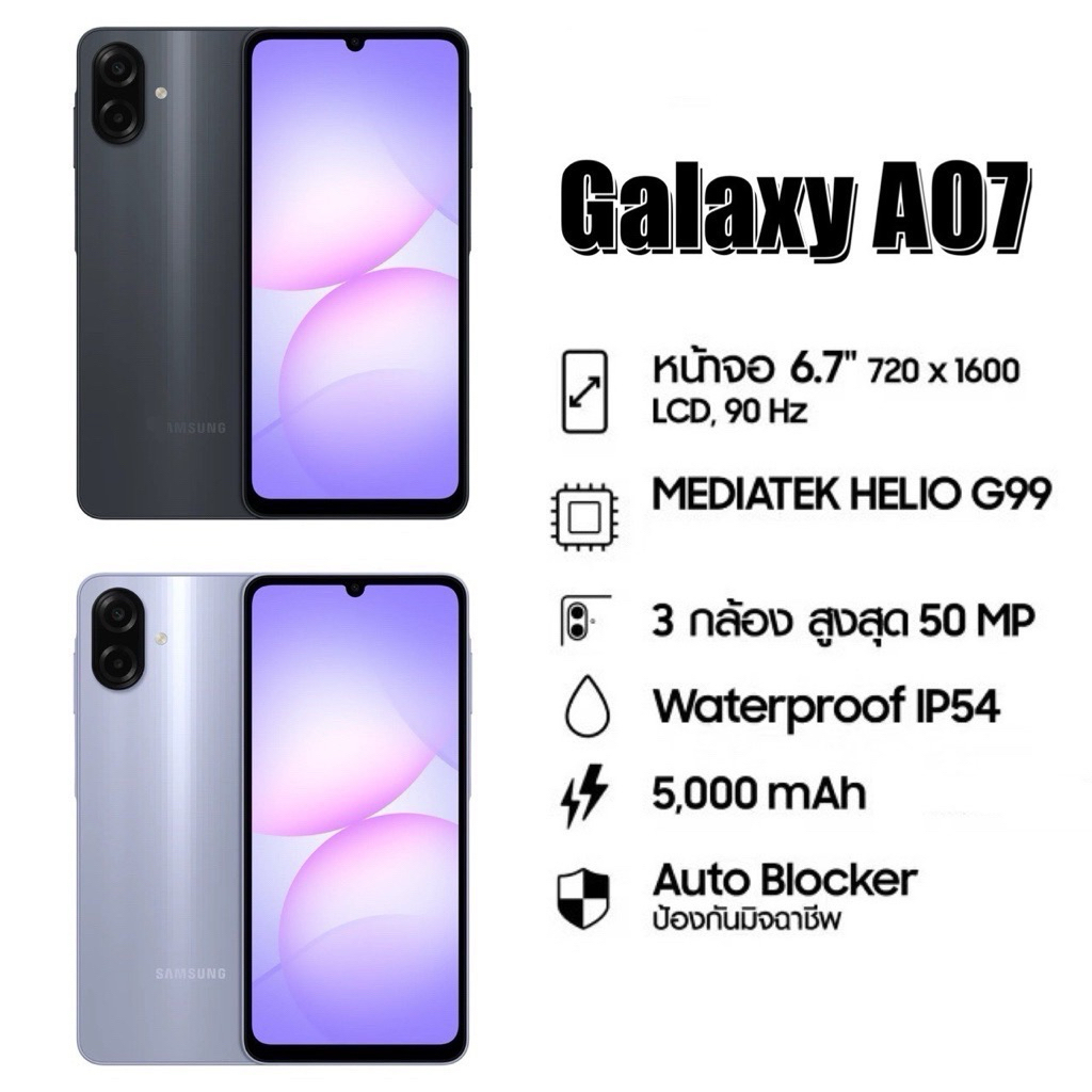 [Hot] มาใหม่ Galaxy A07 4G MediaTek Helio G99 จอ 6.7 นิ้ว HD+ รองรับชาร์จไว แบต 5,000 mAh ศูนย์ไทย by MobileCafe