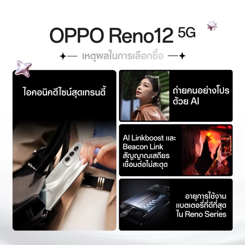 [Hot] OPPO Reno 12 | Reno 12F | Reno12 Pro 5G AI Portrait 50MP , AI Linkboost ชาร์จไว ศูนย์ไทย by MobileCafe