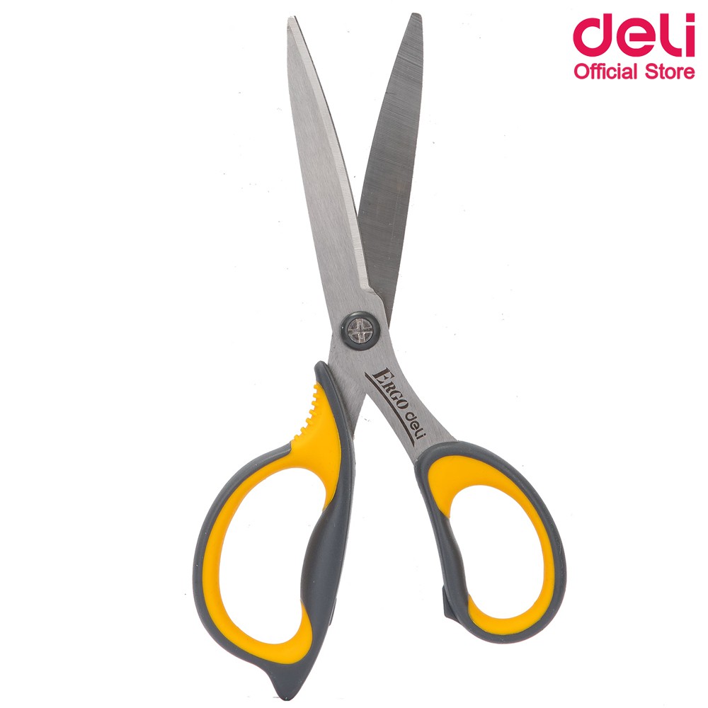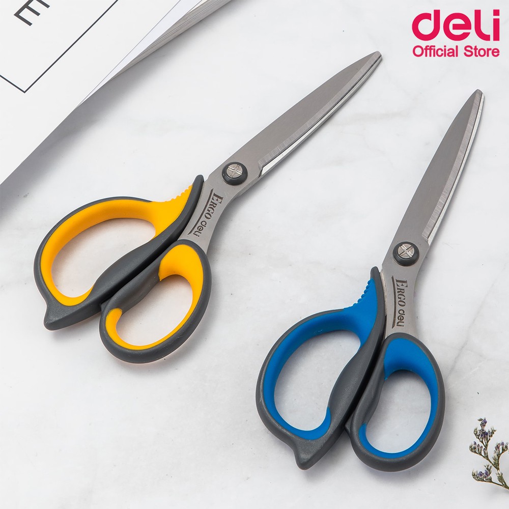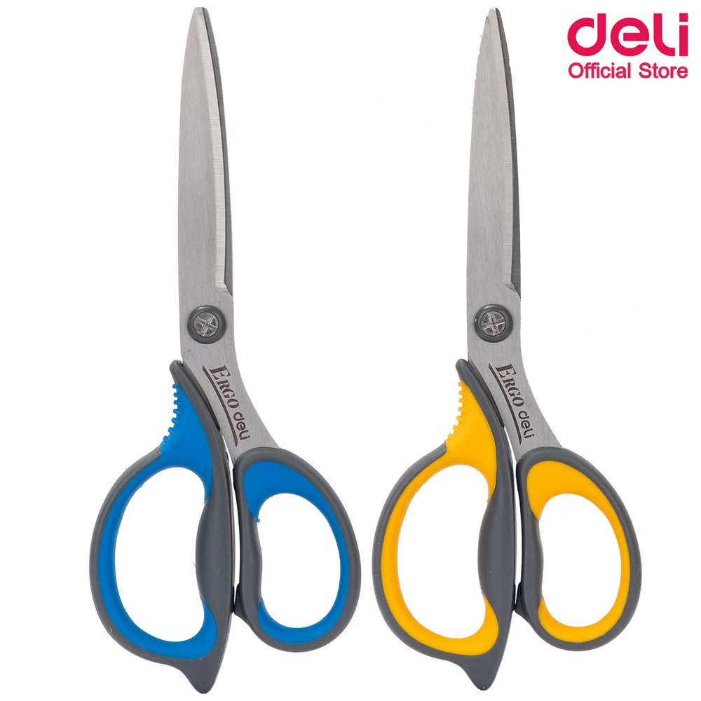 Deli 77759 Scissors กรรไกรสเตนเลส สำหรับตัดกระดาษและผ้า ขนาด 170 mm (6 3/5 นิ้ว) คละสี 1 ชิ้น อุปกรณ์ตัด อุปกรณ์สำนักงาน