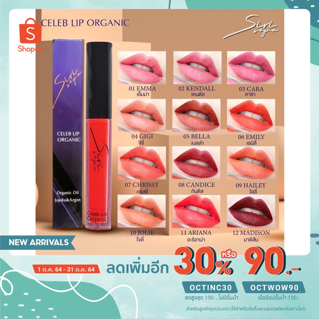 ลิปออร์แกนิค Organic by Sirisopa สีสวย งานดี มีคุณภาพ มีให้เลือก 12 เฉดสี