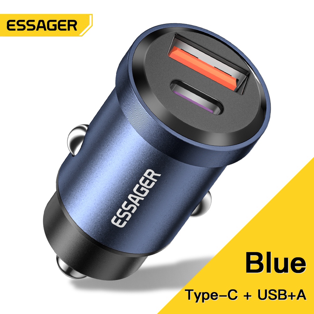 Essager 30W USB Type-C Mini Car Charger – Quick Charge 3.0 PD Fast Charging สําหรับอุปกรณ์ iPhone, Huawei, และ Type-C