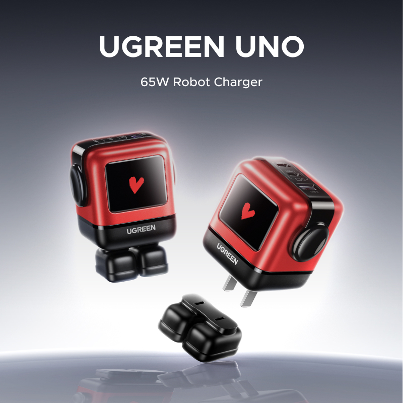 Ugreen Uno RoboGaN 65W USB C USB A Charger Mini Robot Nexode 3 พอร์ต GaN Fast Charger สําหรับ iPhone 16 Pro Max 15/15 Pro Max 14/14 Pro Max/Macbook Air/iPad Pro/iPad Mini