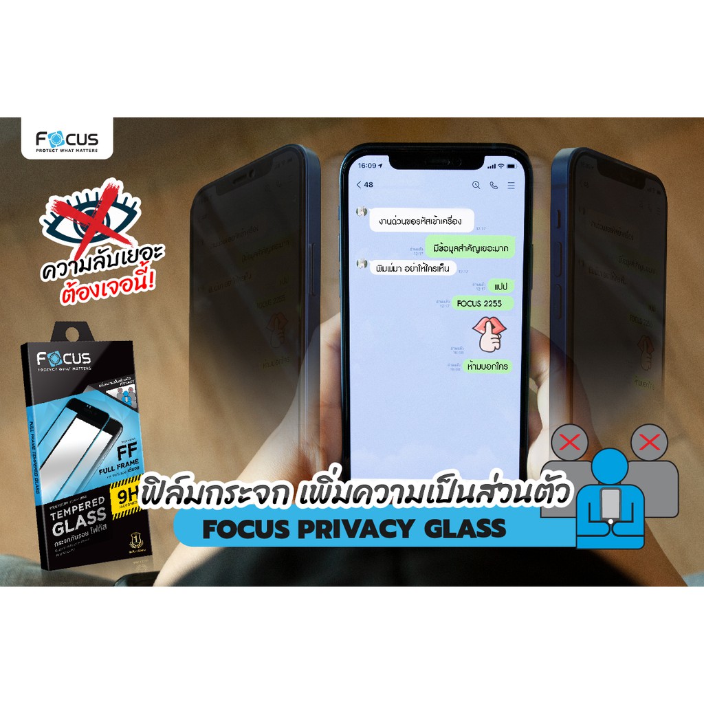 Focus ฟิล์มกระจก Privacy สำหรับ iPhone ไอโฟน 17 17Air 17Pro 17ProMax 16e 16ProMax 16Pro 16Plus 16 15 14 13 12 กันเผือก