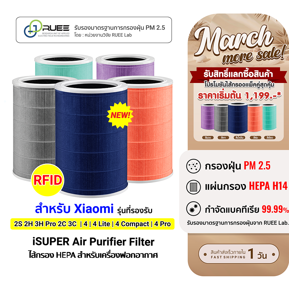(ส่งด่วน4ชม.) iSUPER ไส้กรองเครื่องฟอกอากาศสำหรับ Xiaomi Air Purifier Filter 2S 2H 3H Pro 2C 3C 4/4 Lite/4 Compact/4 Pro