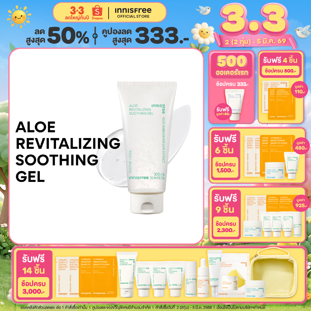 [เจลบำรุงผิว ฟื้นฟูผิวขาดน้ำ] Innisfree Aloe Revitalizin Sooth Gel 300ml อิ นนิสฟรี เจลว่านหางจระเข้ 300มล.