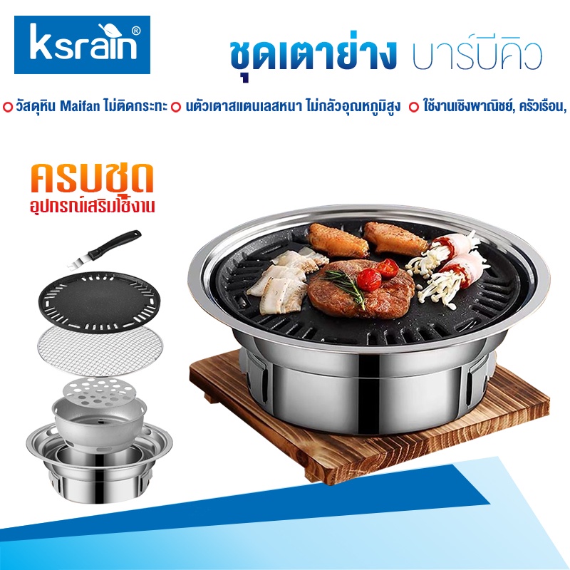 Ksrain เตาย่างบาร์บีคิวไร้ควันถ่านในครัว เตาปิ้งย่างบาร์บีคิว เตาย่างเกาหลี บาร์บีคิวเชิงพาณิชย์ย่างถ่าน กระทะปิ้งย่าง