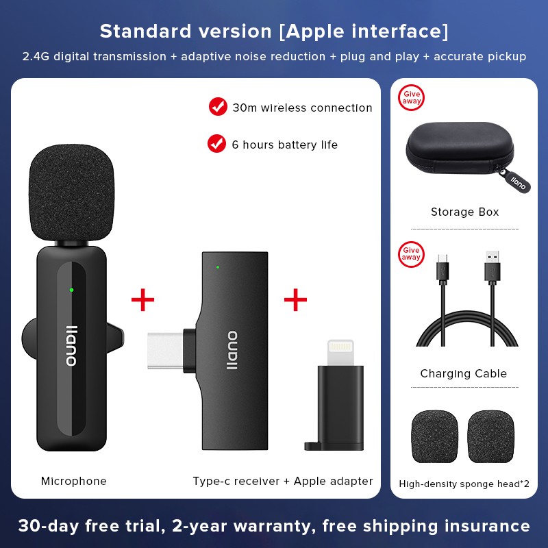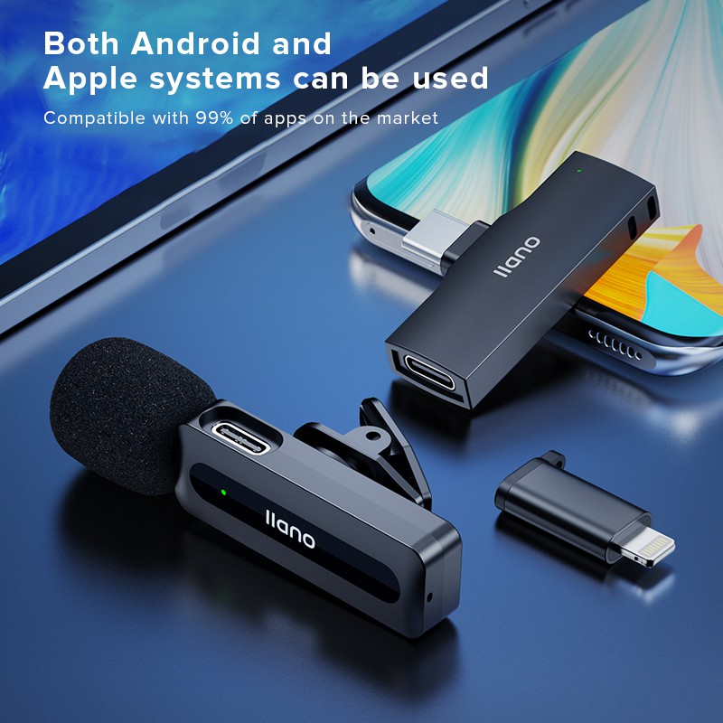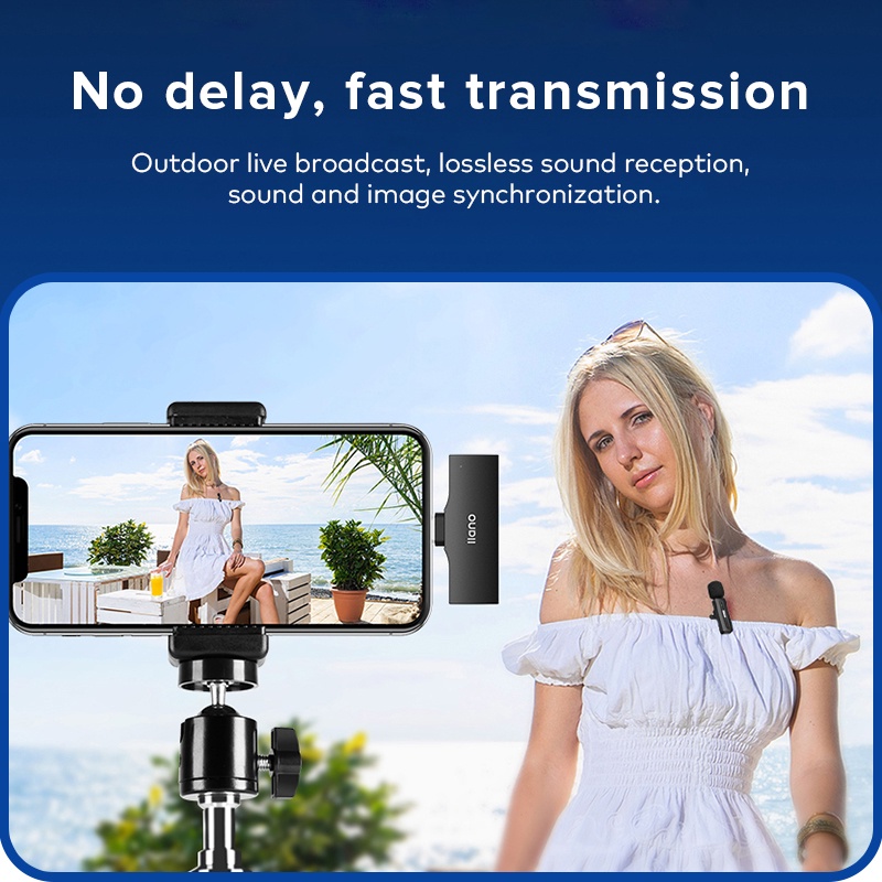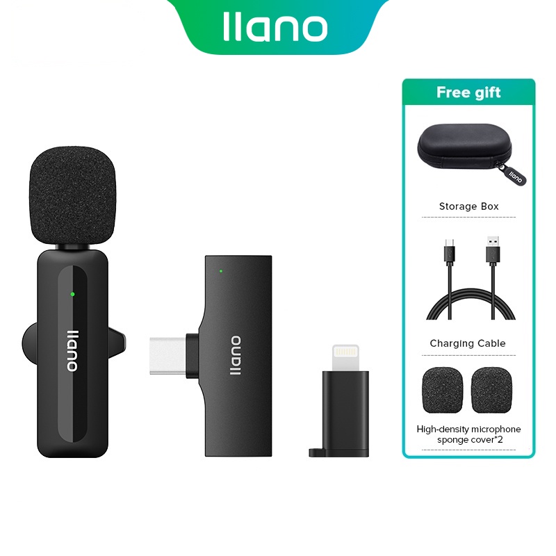 llano ไมโครโฟนไร้สายแบบหนีบเสื้อ RX-TX Type-c pulg ถ่ายทอดสด สัมภาษณ์ การบันทึกวิดีโอ