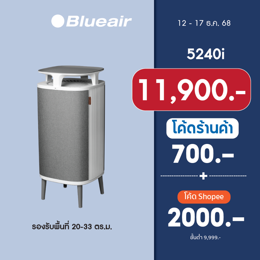 Blueair เครื่องฟอกอากาศ PM 2.5 Air Purifier รุ่น DustMagnet 5240i ครอบคลุมขนาดห้อง 48 ตร.ม ฟอกเร็วสูงสุดใน 30 นาที