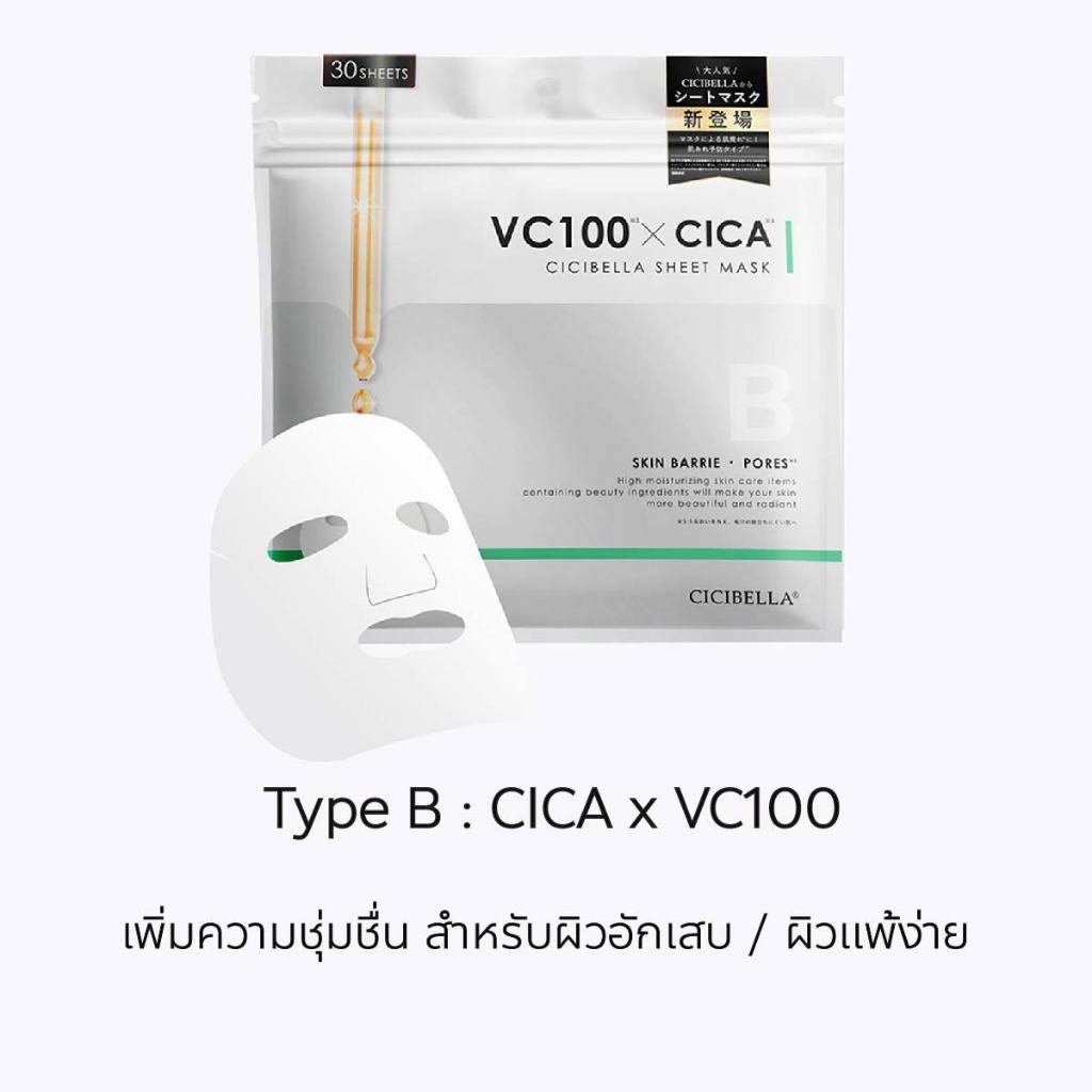 แผ่นมาร์กหน้าญี่ปุ่น Cicibella Sheet Mask 30 แผ่น Made in Japan