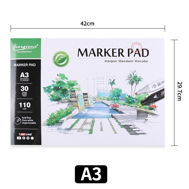 marker pen drawing book 30 Sheet A3/A4/A5 Professional Marker Paper Spiral Sketch Notepad Book Painting Drawing Artist