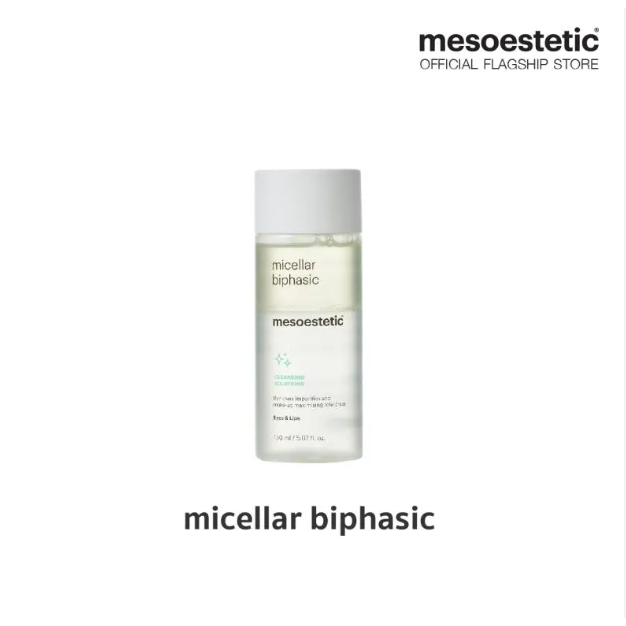 mesoestetic micellar biphasic 150 ml - ผลิตภัณฑ์เช็ดทำความสะอาดเครื่องสำอางที่ล้างออกยาก หรือกันน้ำ อ่อนโยน