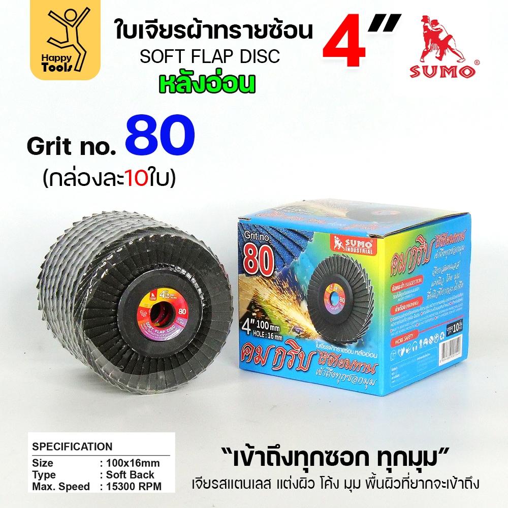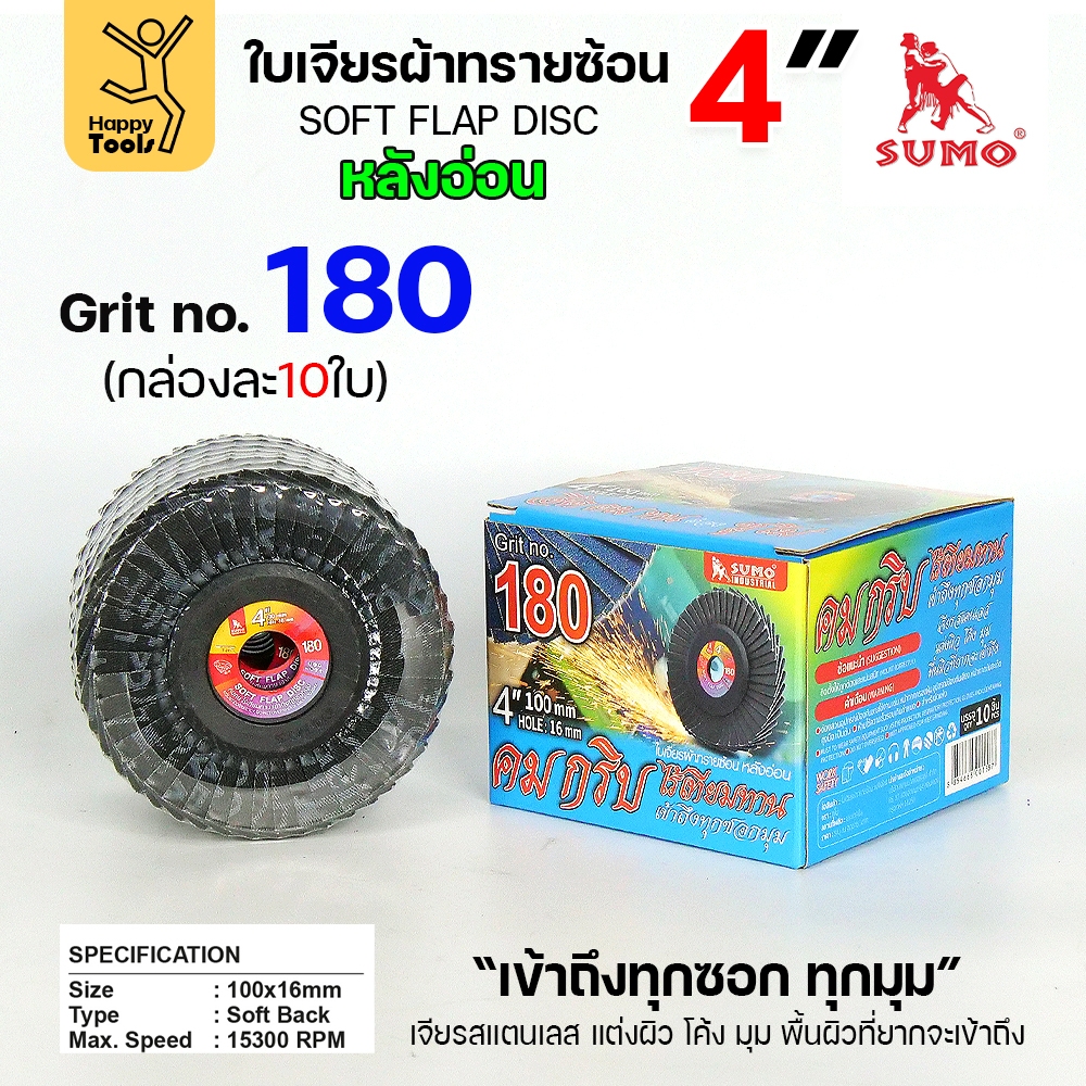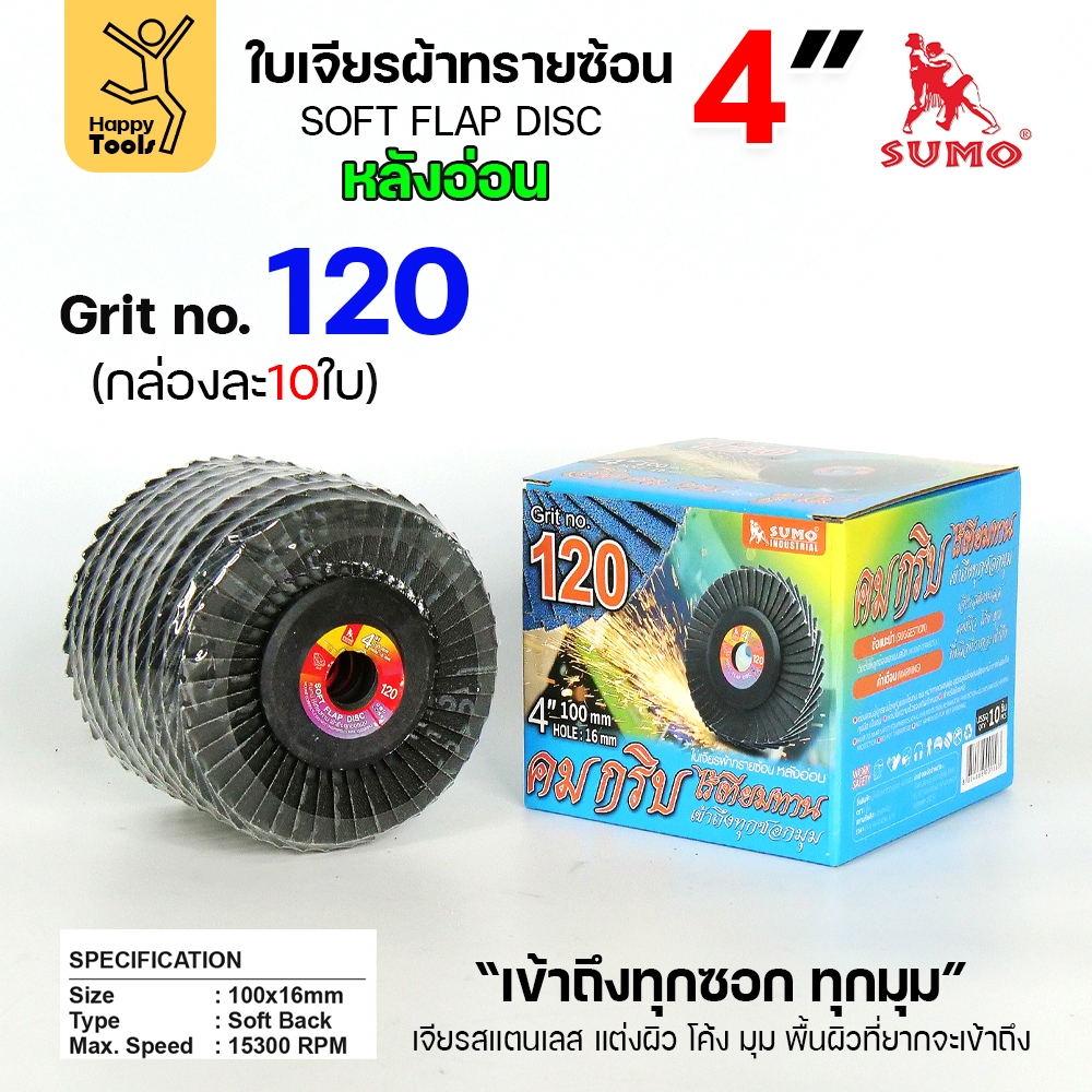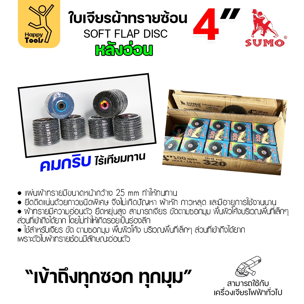 SUMO จานทรายซ้อน หลังอ่อน ทรายสีฟ้า 4" เบอร์ให้เลือก เข้าซอกดี เจียรเหล็ก เจียรสแตนเลส