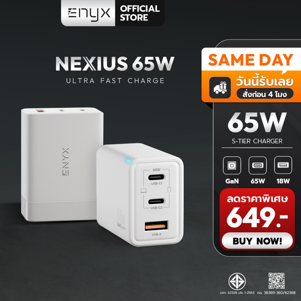 ENYX NEXIUS หัวชาร์จ A8S PD 65W ชาร์จเร็ว Fast Charge USB C 3.0 Adaptive Charger Samsung 1OS Android