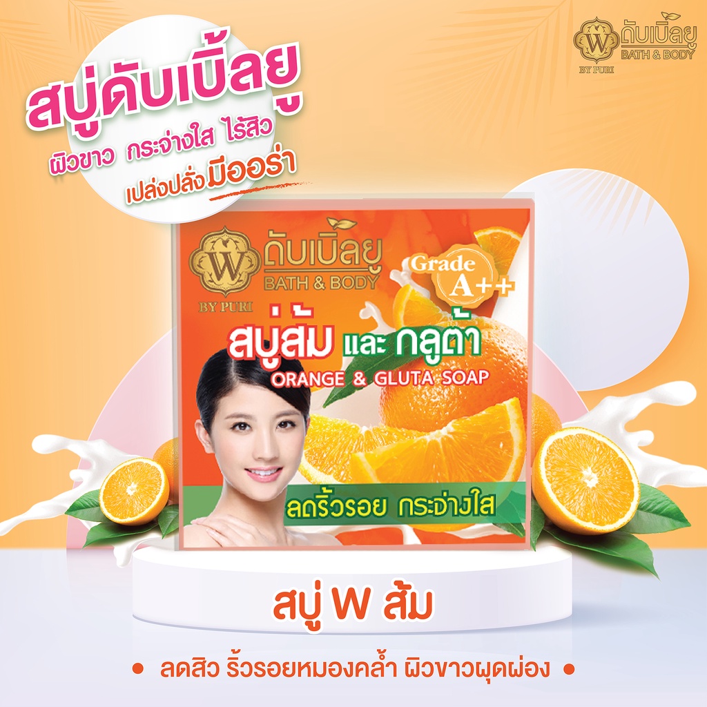 สบู่ดับเบิ้ลยู W Soap สบู่ส้ม (แพ็ค3) สูตรลับผสมกลูต้า+วิตามินบี3 กลิ่นหอม ผิวขาว หน้าใส เนียนนุ่ม ชุ่มชื้น (สบู่ไหมทอง)