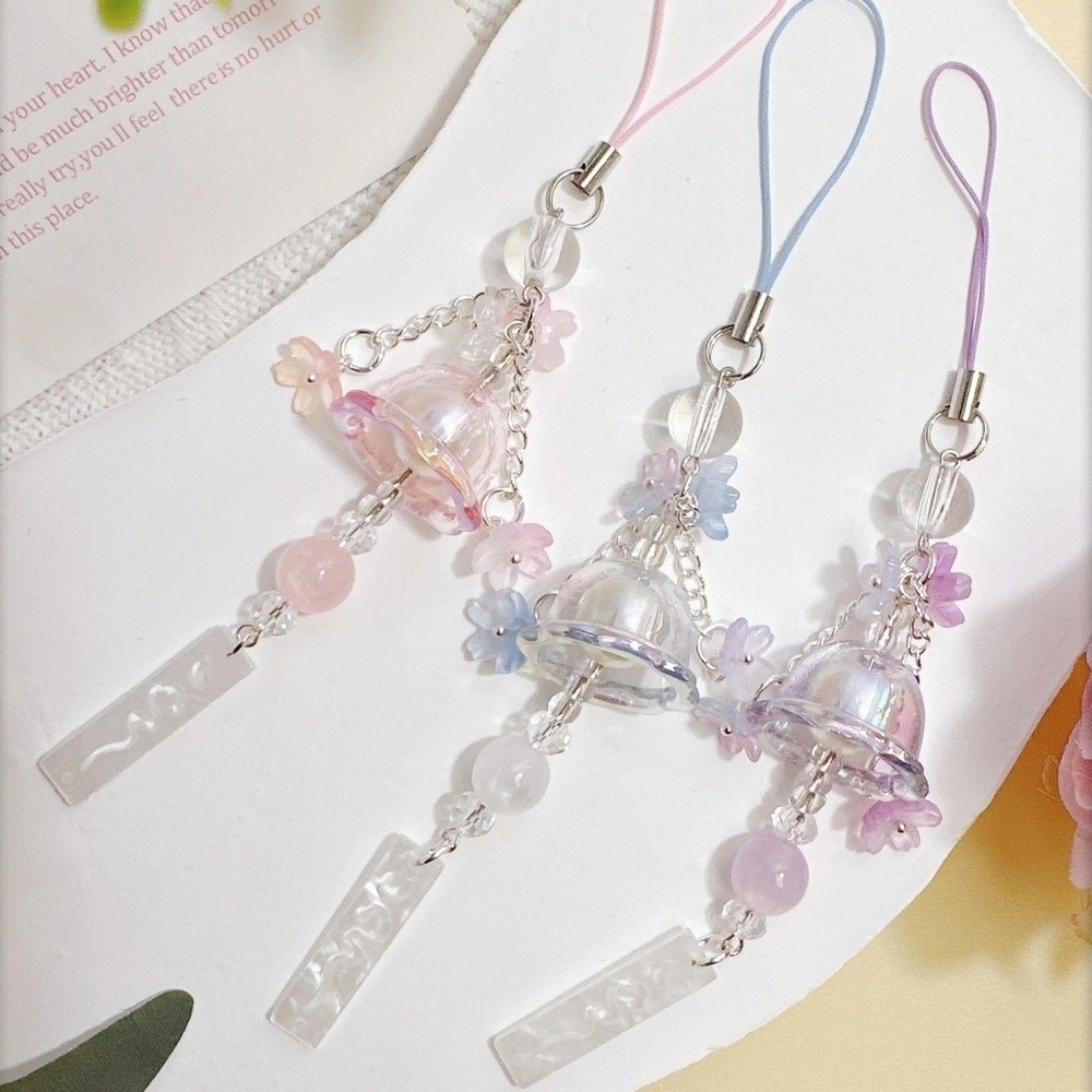 COCOFRUIT แมงกะพรุนกระดิ่งลม, ของขวัญ Y2K พวงกุญแจแมงกะพรุน, เครื่องประดับ Cherry Blossoms รถแขวนตกแต่งโทรศัพท์พวงกุญแจ