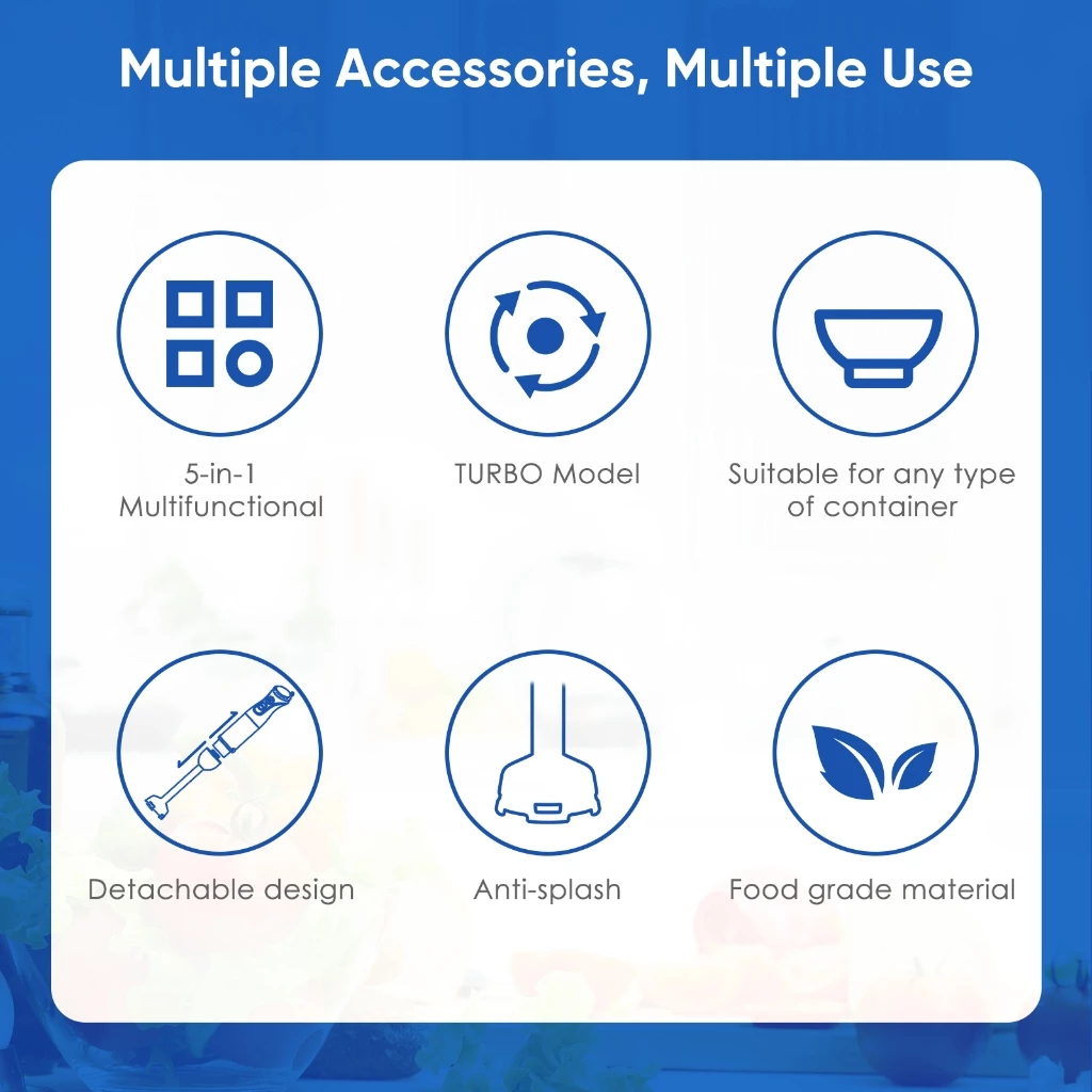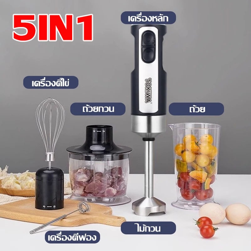 เครื่องปั่นมือถือ 5in1เครื่องปั่นผสมอาหารมือถือ สแตนเลส ตีไข่ เนื้อสับ มิลค์เชค การคั้นน้ำ ซอส เบเกอรี่