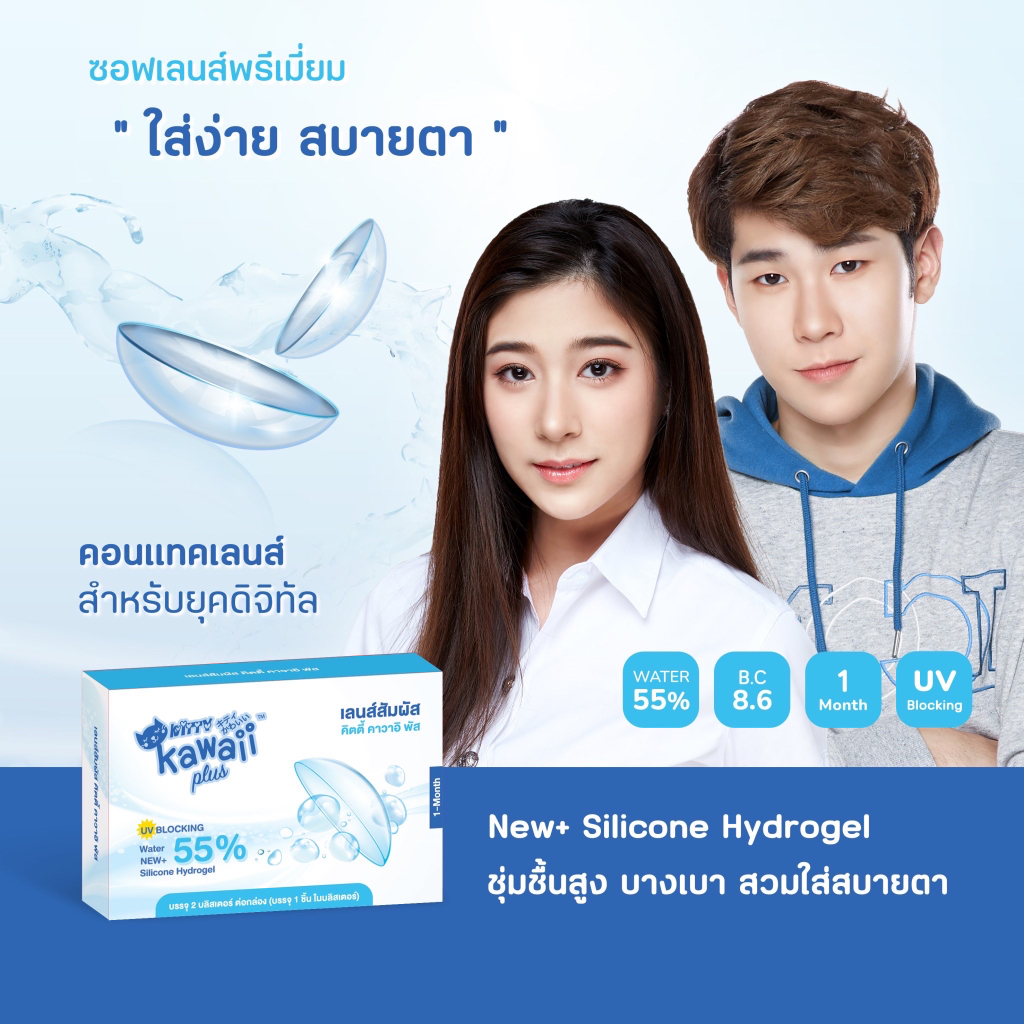 (COD)คอนแทคเลนส์ kitty kawaii เลนส์ใส สายตา -50 ถึง -1000 ค่าอมน้ำ55% รายเดือน