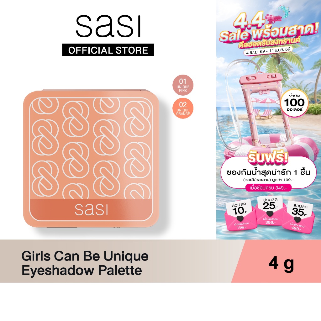 sasi ศศิ อายแชโดว์ พาเลท 4 สี 3 เนื้อ เกิร์ล แคน บี ยูนีค / Girls Can Be Unique Eyeshadow Palette