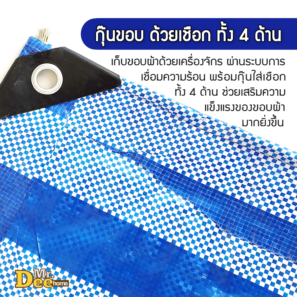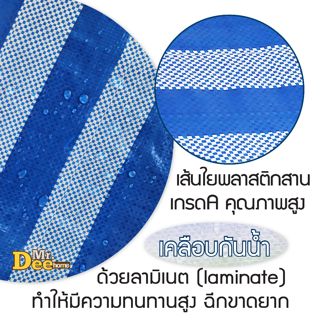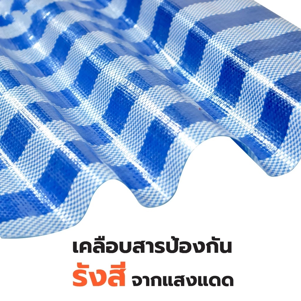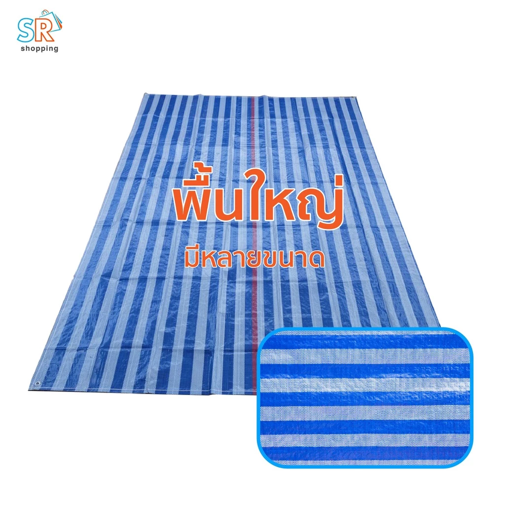 ผ้าใบกันน้ำ PE ลายทางสีน้ำเงินขาว ทนทาน ครบชุด ใช้งานได้หลากหลาย