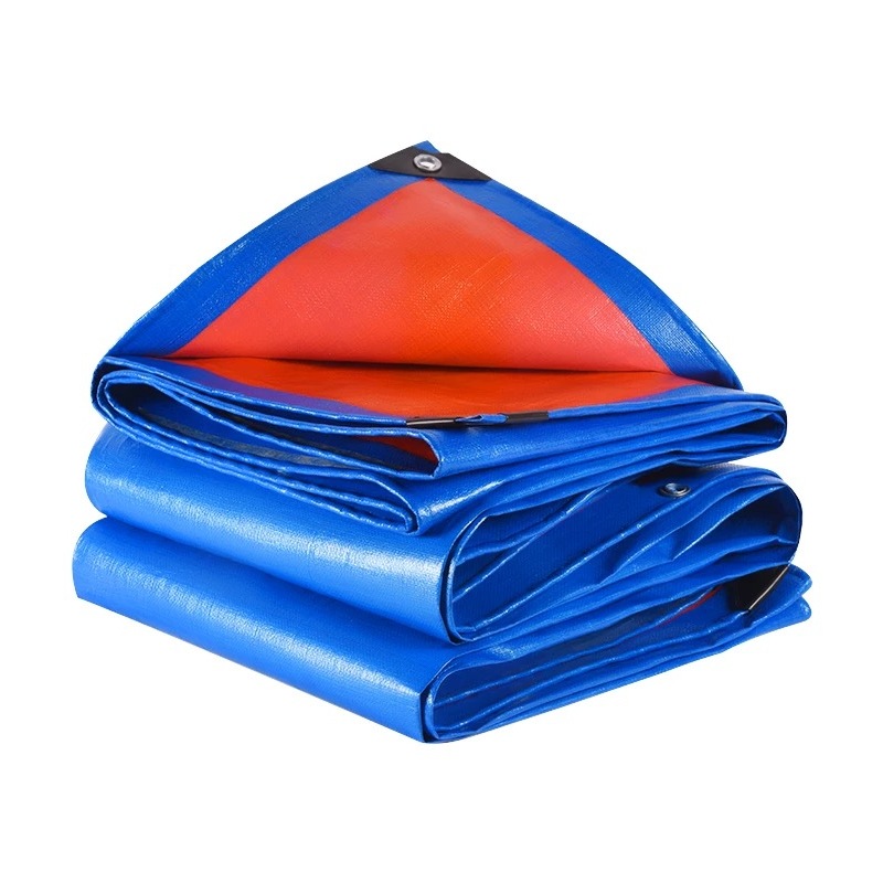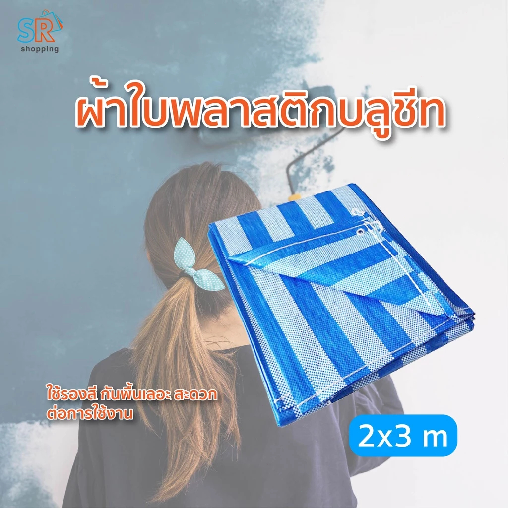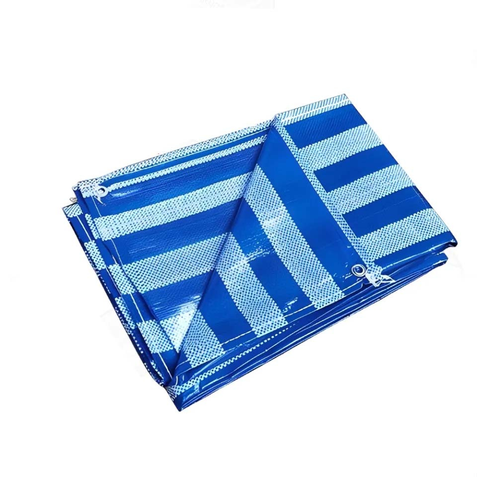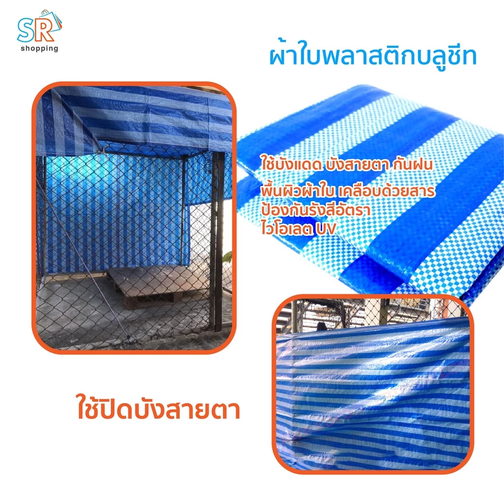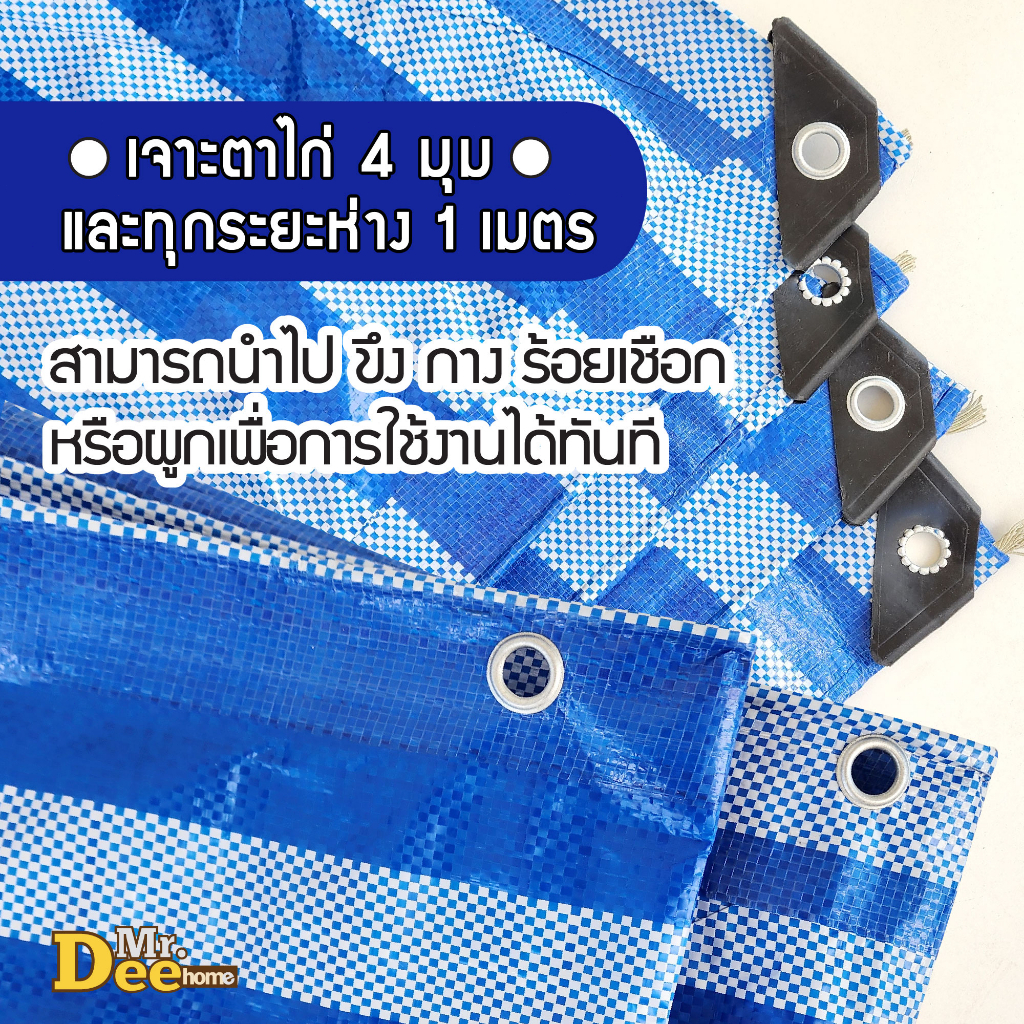 ผ้าใบกันน้ำ PE ลายทางสีน้ำเงินขาว ทนทาน ครบชุด ใช้งานได้หลากหลาย